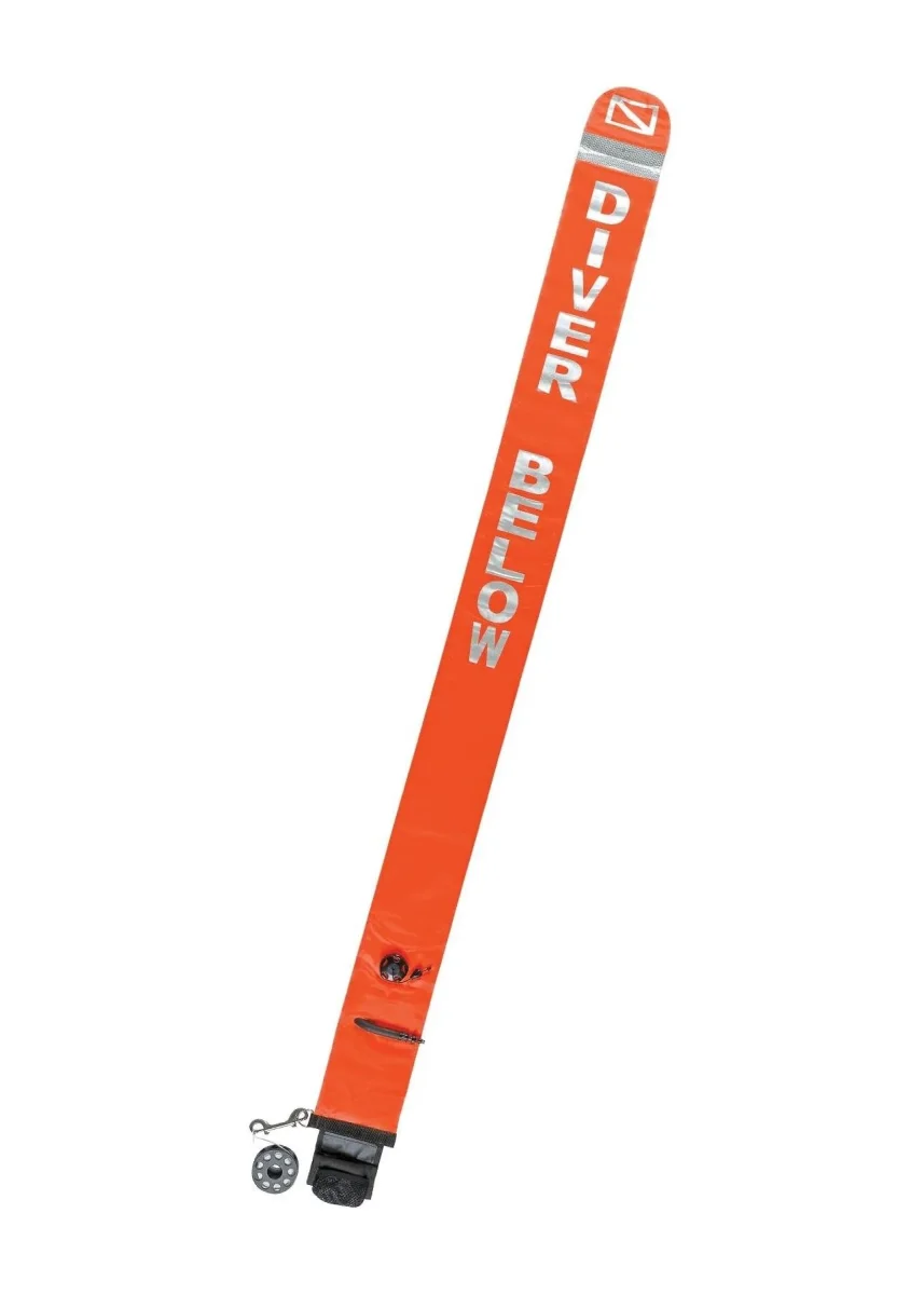 La boa segnala sub ‘Diver below‘ segnala la presenza del sub durante l‘immersione. Grazie alla lunghezza di 160 cm ed al colore arancione acceso è facilmente visibile anche a distanza.