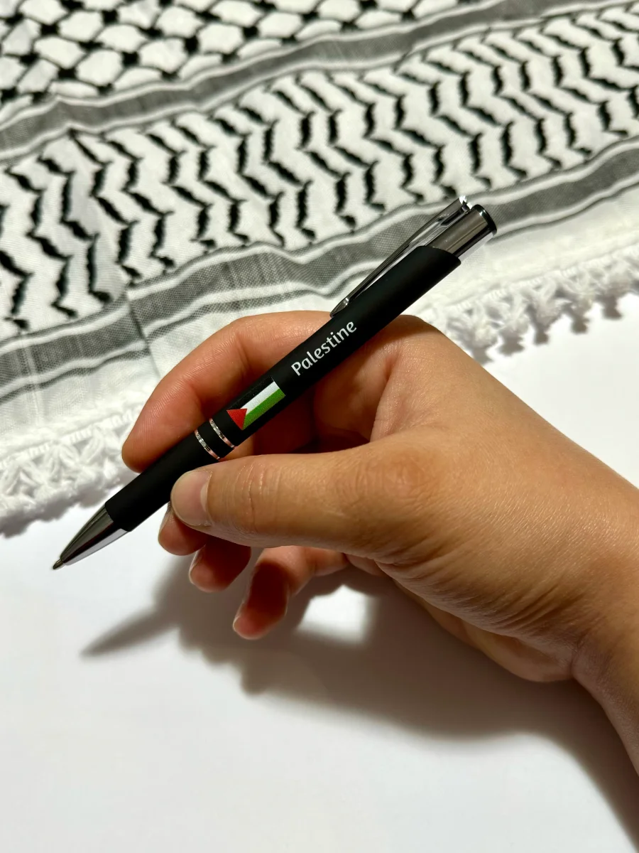 Penna a sfera soft touch a tema Palestina.Materiale alluminio, inchiostro nero