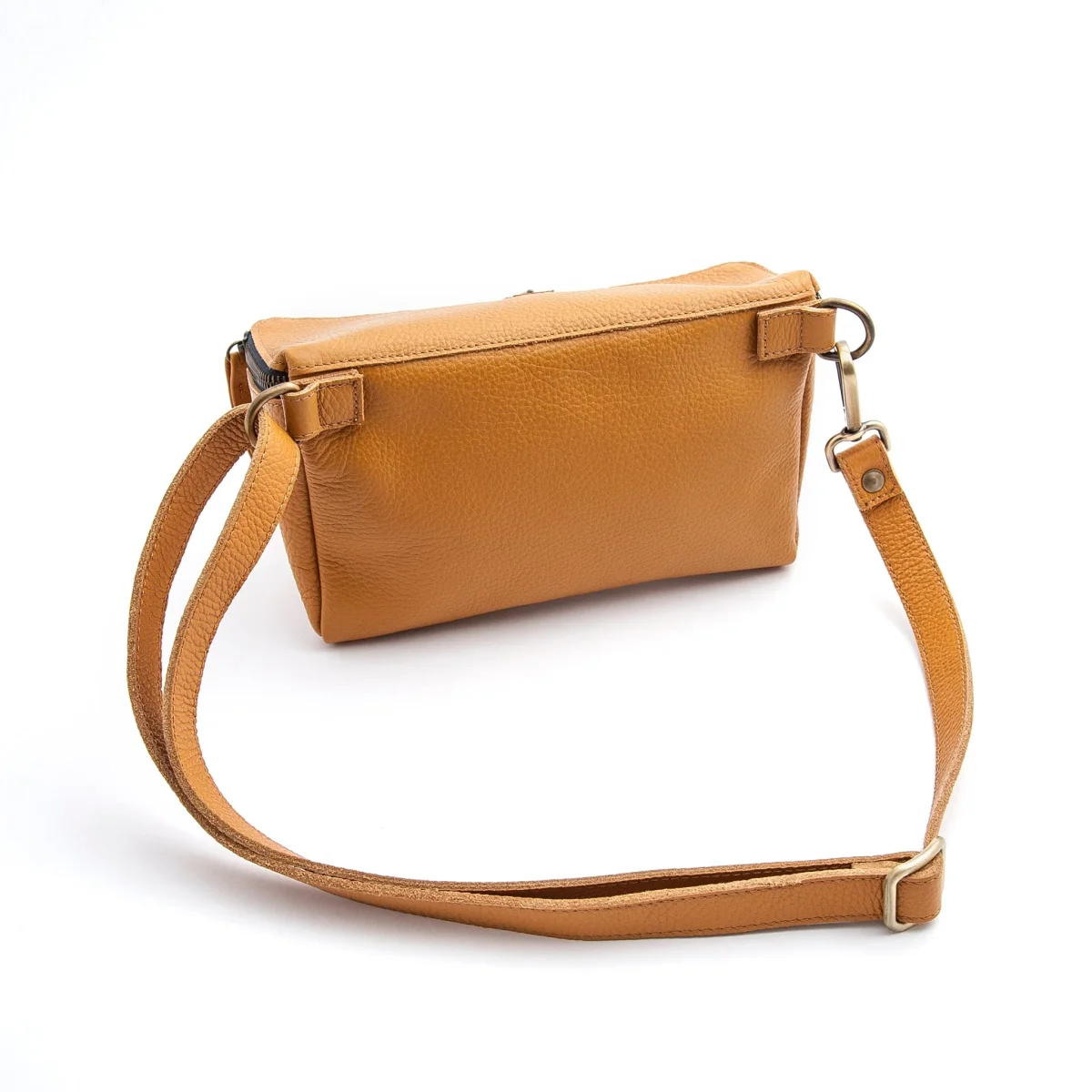 Un comodo marsupio con cinta regolabile dall’accattivante forma geometrica. petra è chiusa da una doppia zip che permette di accedervi con estrema facilità. Questo accessorio è di molteplice interpretazione, tornato alla ribalta sia per la sua comodità che per le diverse possibilità di essere indossato. Gli accessori sono in ottone spazzolato. Interno foderato è corredato […]