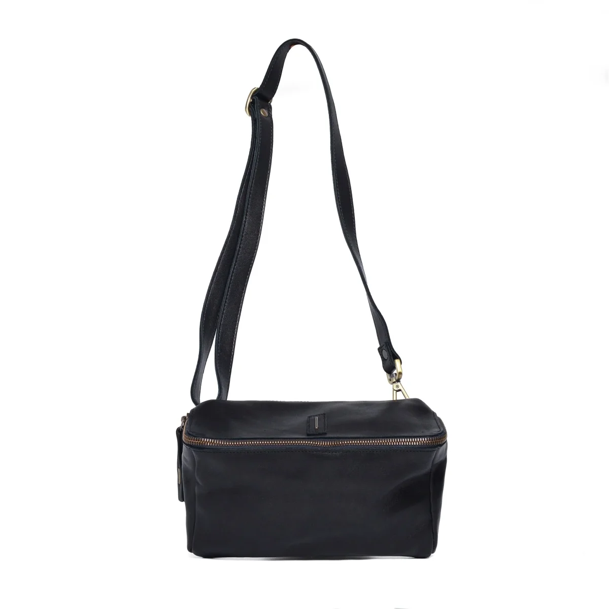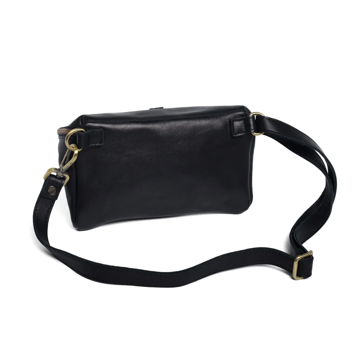Un comodo marsupio con cinta regolabile dall’accattivante forma geometrica. Petra è chiusa da una doppia zip che permette di accedervi con estrema facilità. Questo accessorio è di molteplice interpretazione, tornato alla ribalta sia per la sua comodità che per le diverse possibilità di essere indossato. Gli accessori sono in ottone spazzolato. Interno foderato e corredato […]