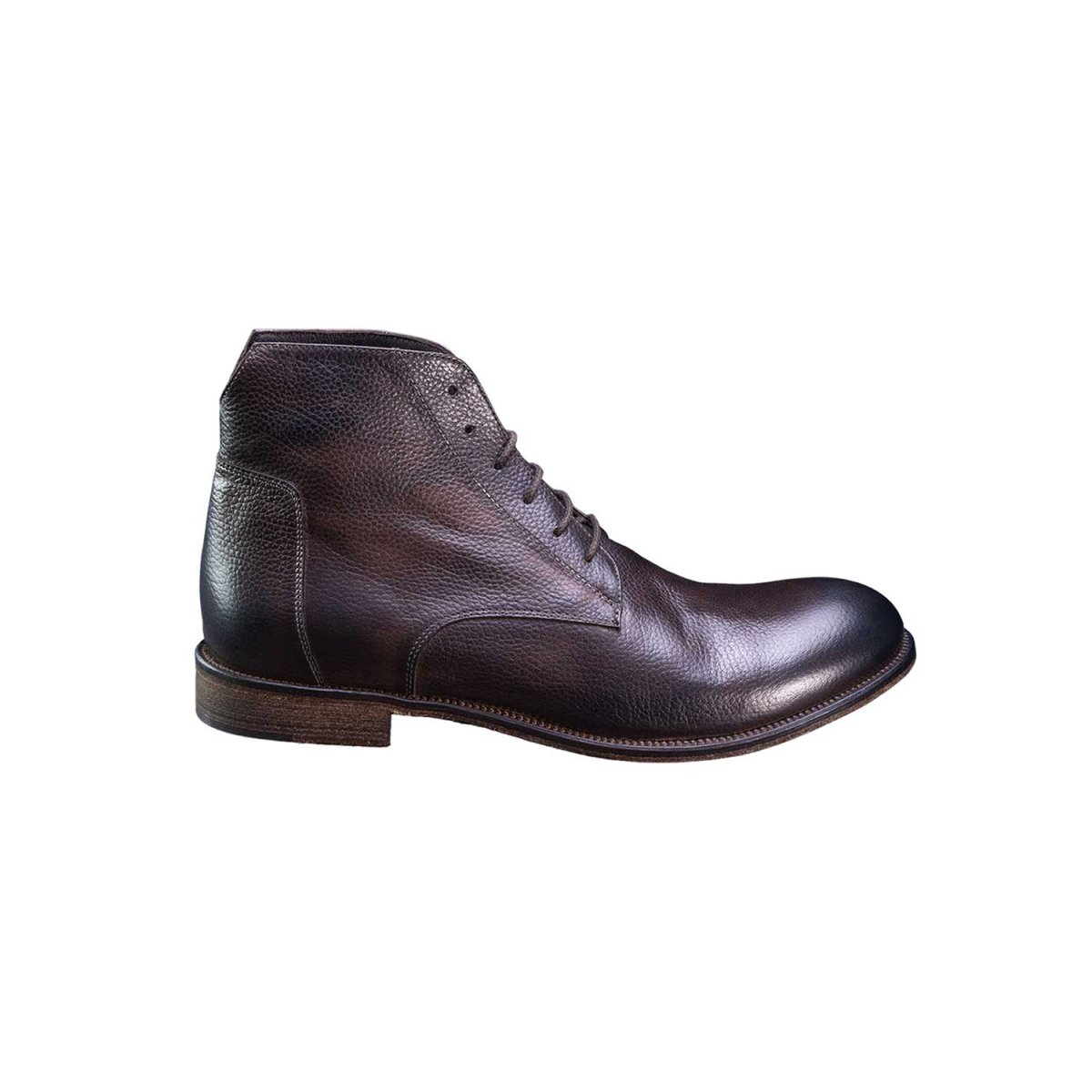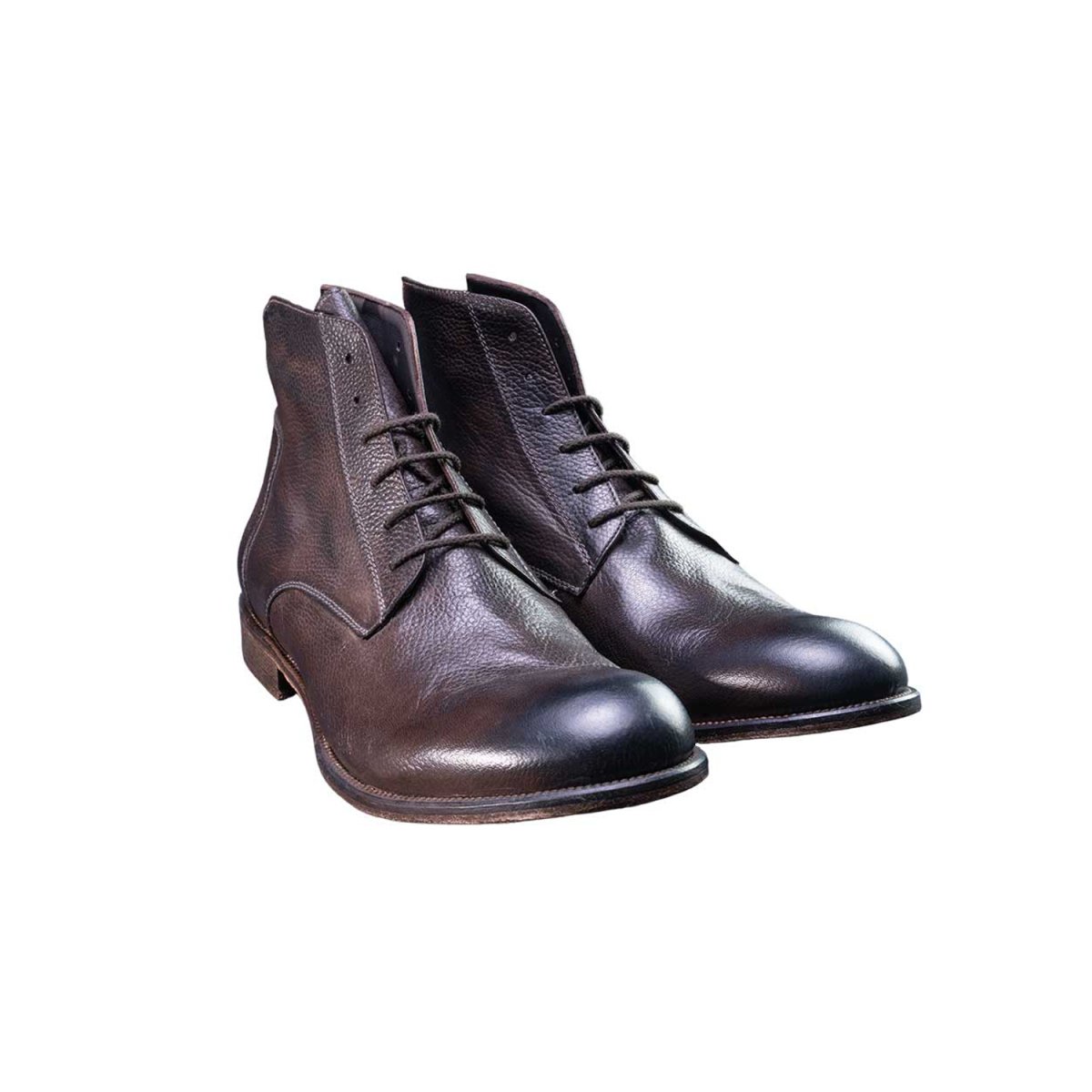 Il polacchino derby allacciato da uomo viene lavorato a mano artigianalmente , il pellame estremamente morbido offre grande comodità mantenendo un look casual e di uso quotidiano. Questa texture viene data dalla martellatura del pellame dopo che è stata lavata e trattata. La suola è interamente in cuoio con inserto in gomma antiscivolo.