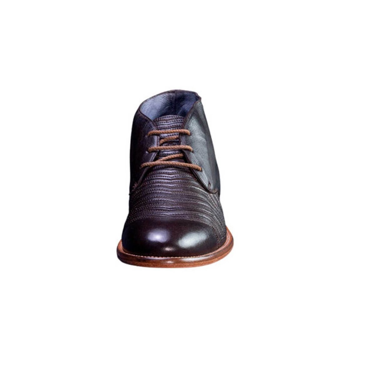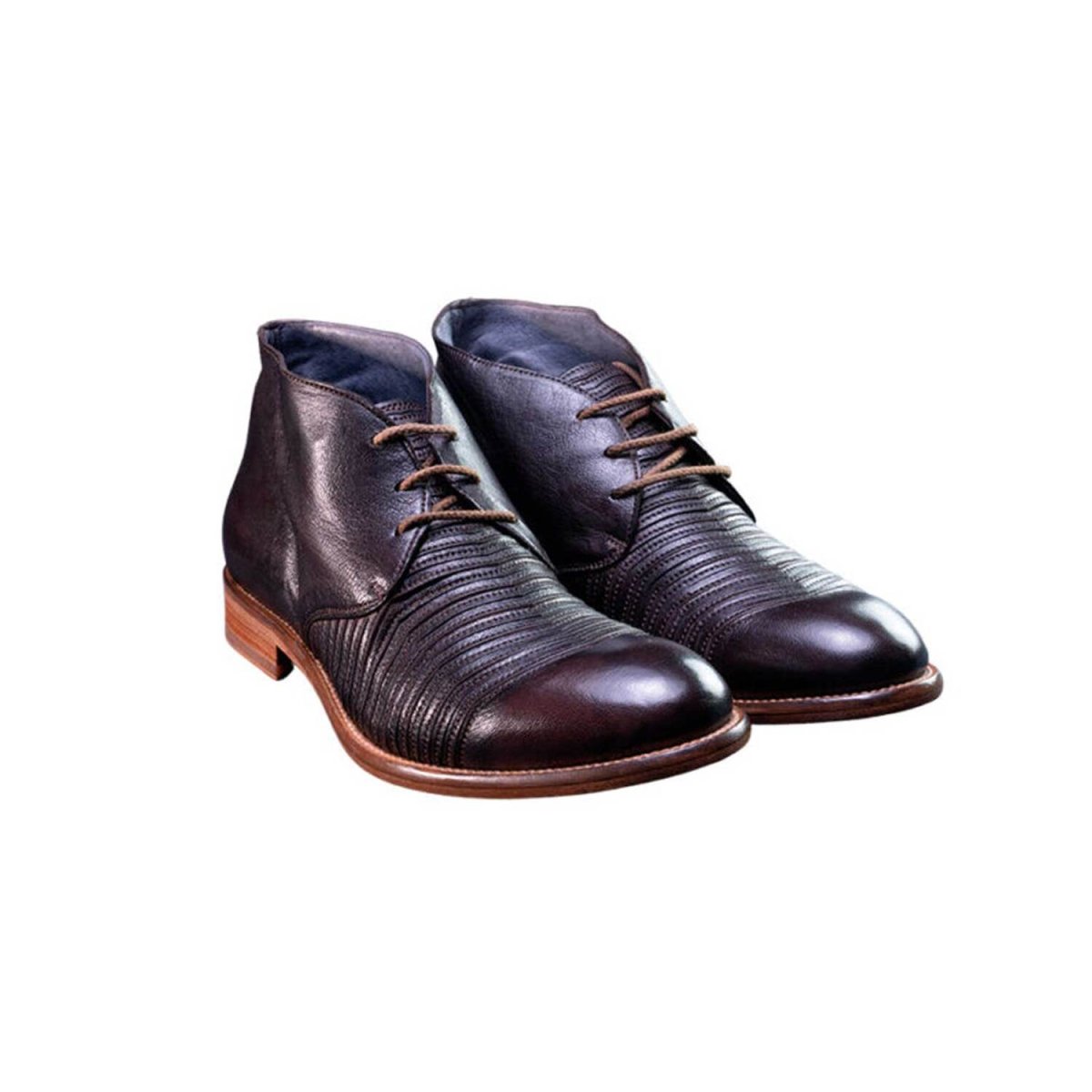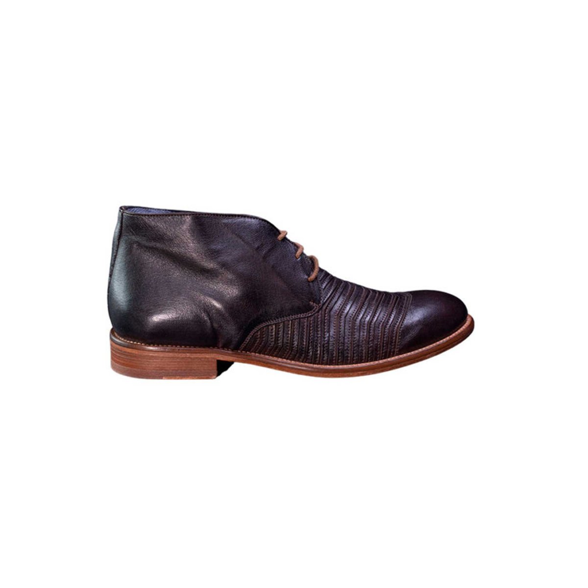 Polacchino derby da uomo stringato, presenta una lavorazione interamente artigianale sul vero pellame utilizzato. Le incisioni vengono fatte con un laser. La suola cucita è interamente in cuoio ricoperta con uno strato di gomma antiscivolo che rende la calzatura molto versatile per utilizzi sia invernale che estivo.