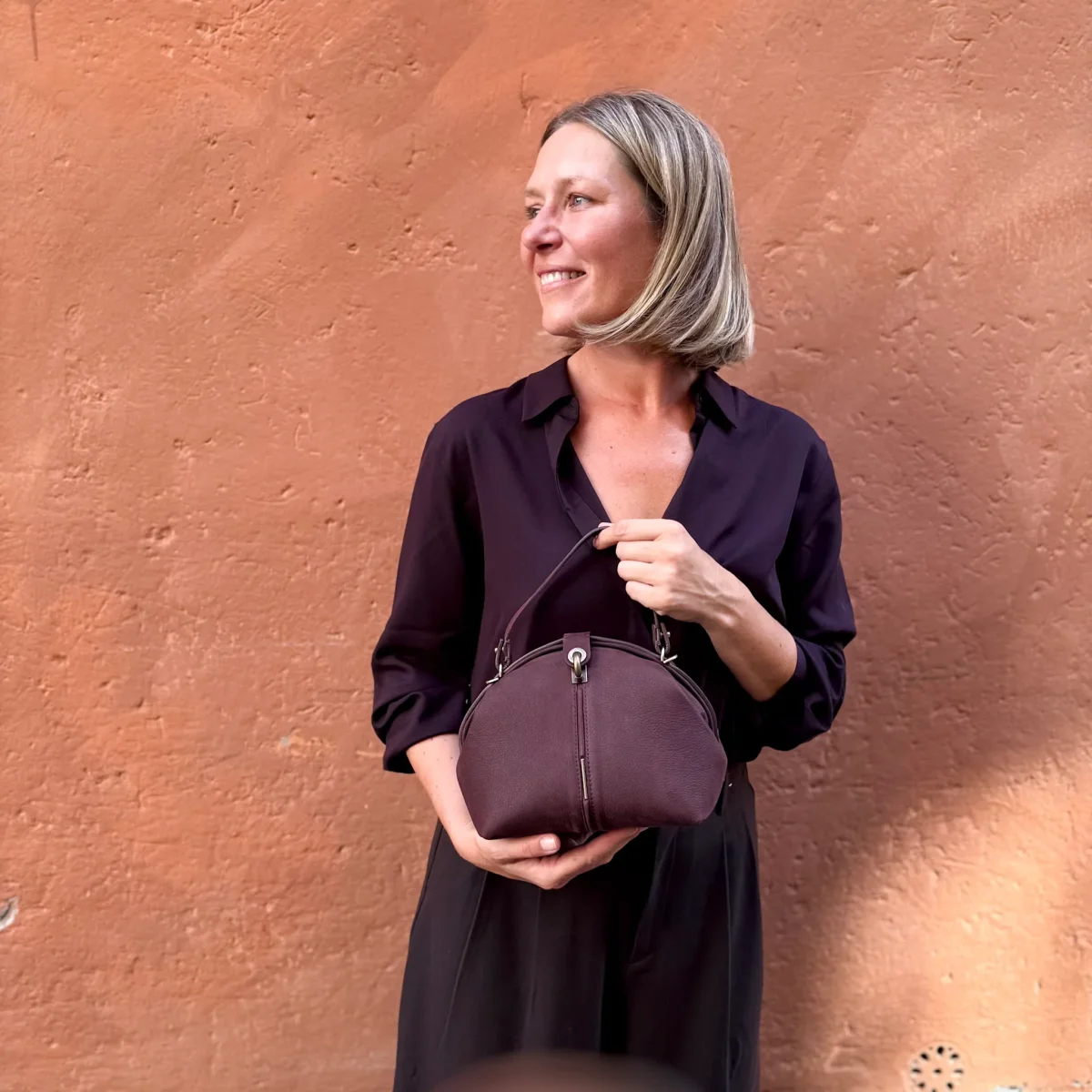 La forma arrotondata, la morbidezza della struttura e i dettagli essenziali rendono questa borsa una compagna versatile: perfetta in mano, comoda a tracolla grazie al manico corto e alla tracolla regolabile.