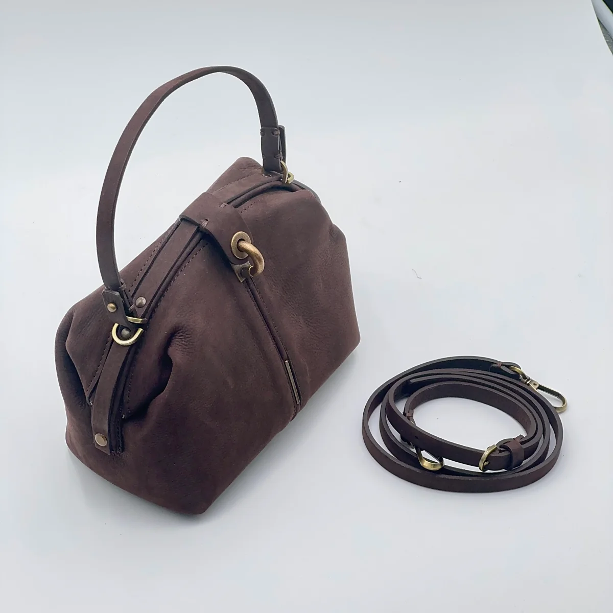 • Tracolla regolabile e rimovibile in cuoio doppiato