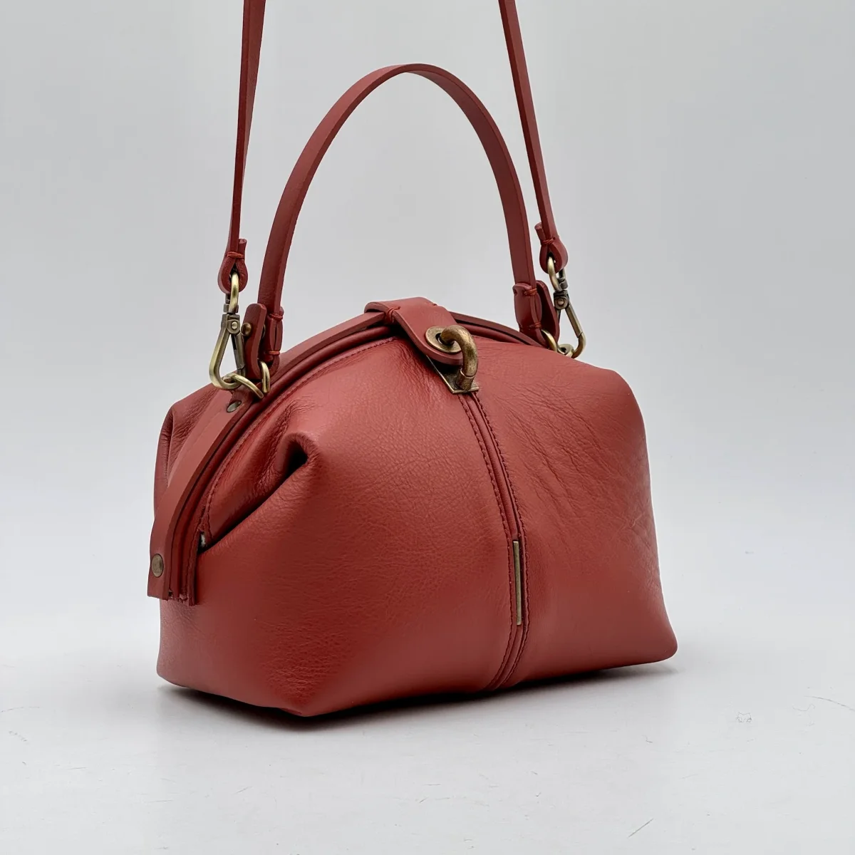 La forma arrotondata, la morbidezza della struttura e i dettagli essenziali rendono questa borsa una compagna versatile: perfetta in mano, comoda a tracolla grazie al manico corto e alla tracolla regolabile.