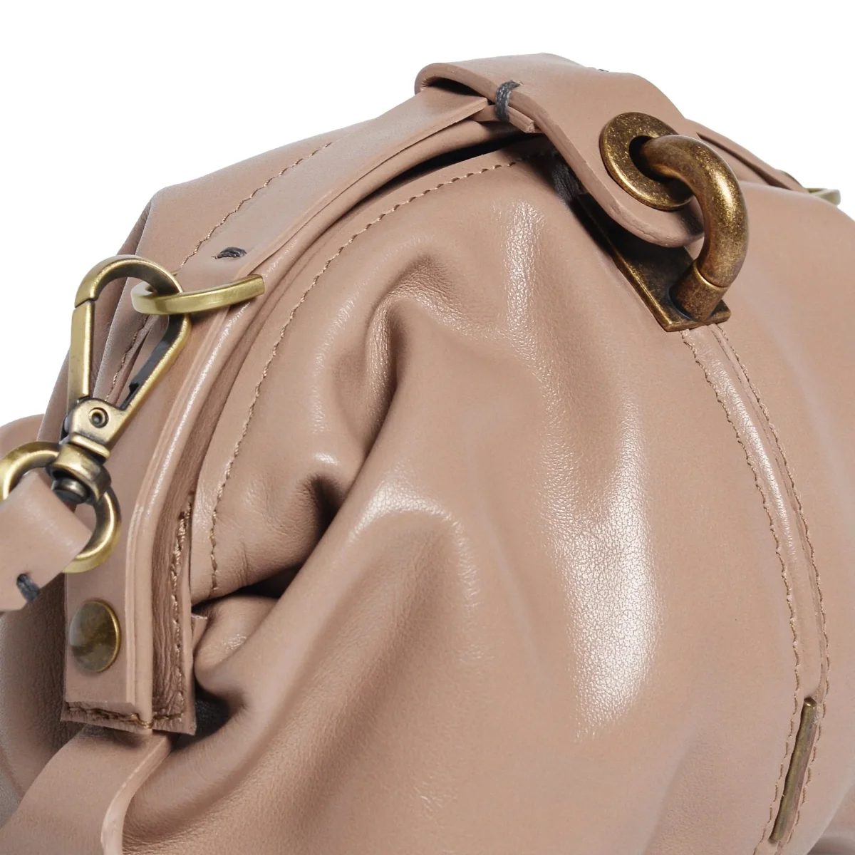 Pouf small è una piccola e morbida borsa a mano con tracolla dalla forma a mezza luna.