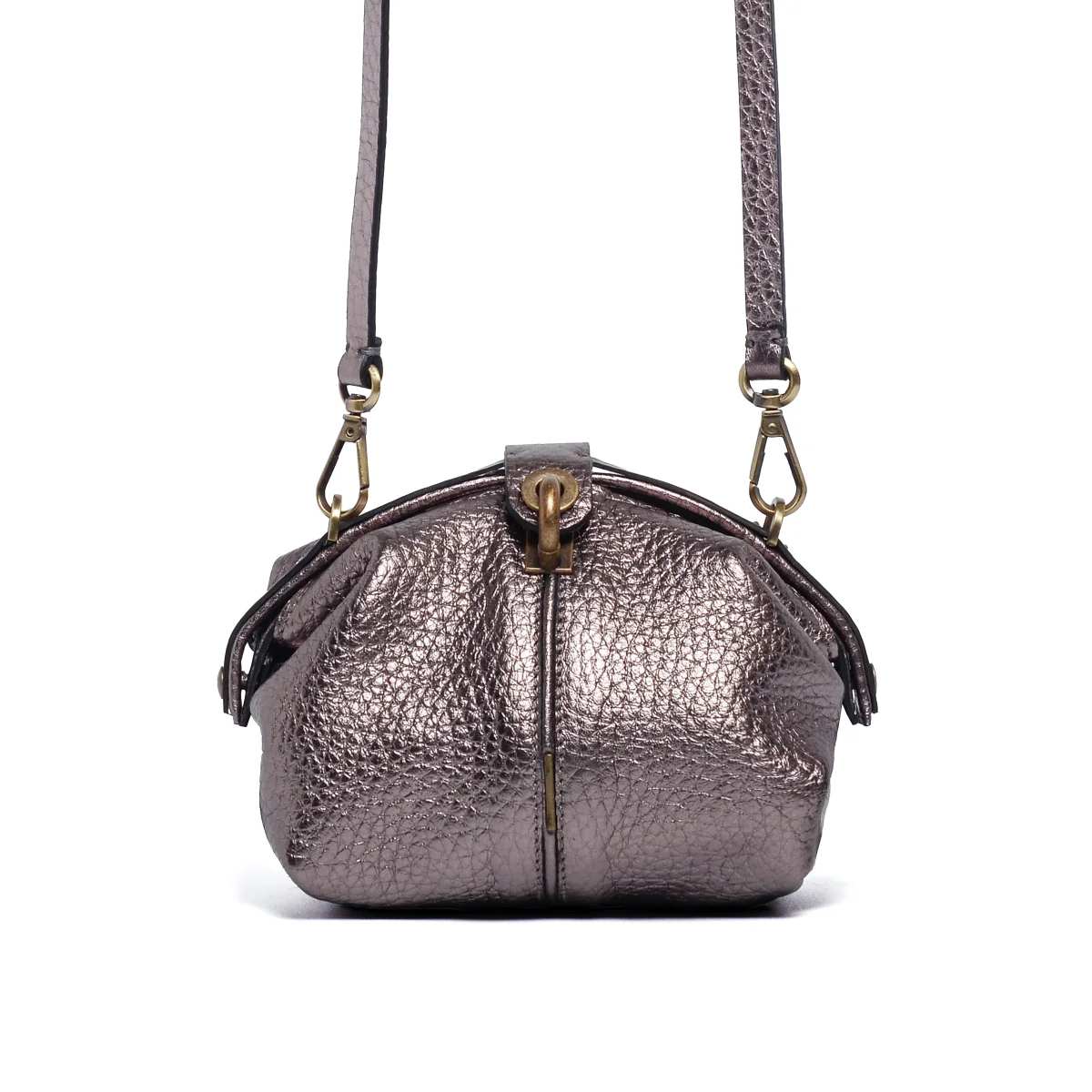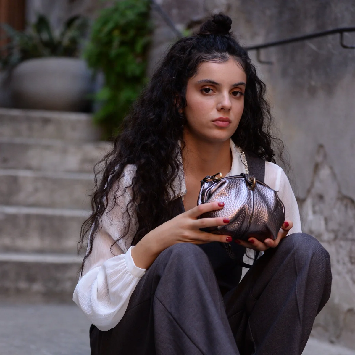 Pouf small è una piccola e morbida borsa a mano con tracolla dalla forma a mezza luna.