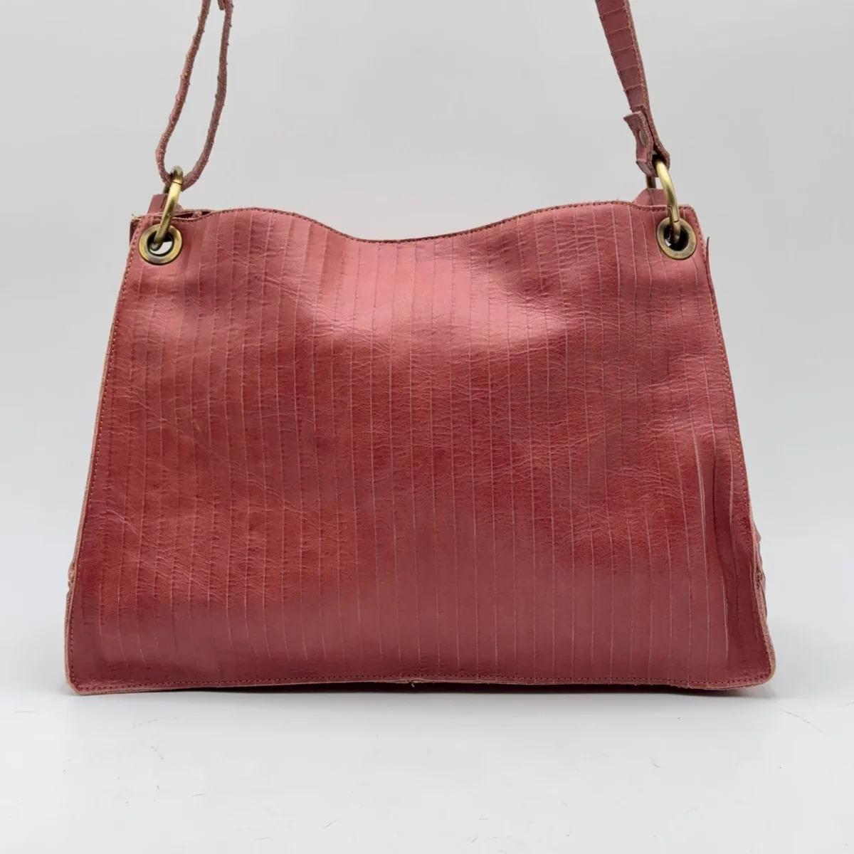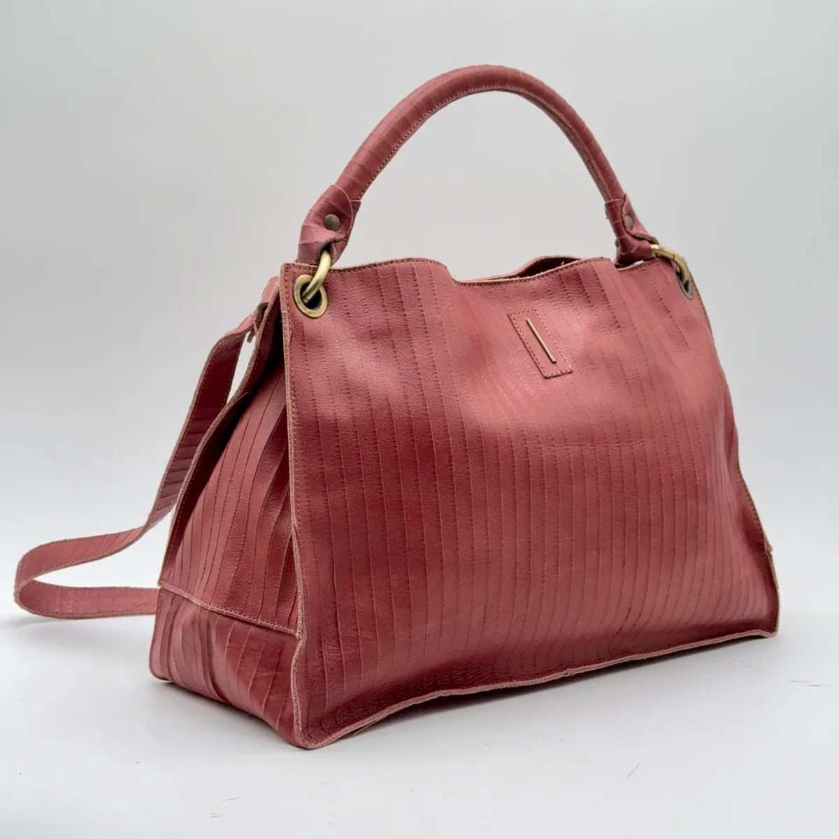 Borsa a spalla in pelle, organizzata in 3 scomparti dei quali quello centrale con la zip. Chiusura borsa con il magnete. Quadranti rettangolari e costruzione a soffietto.