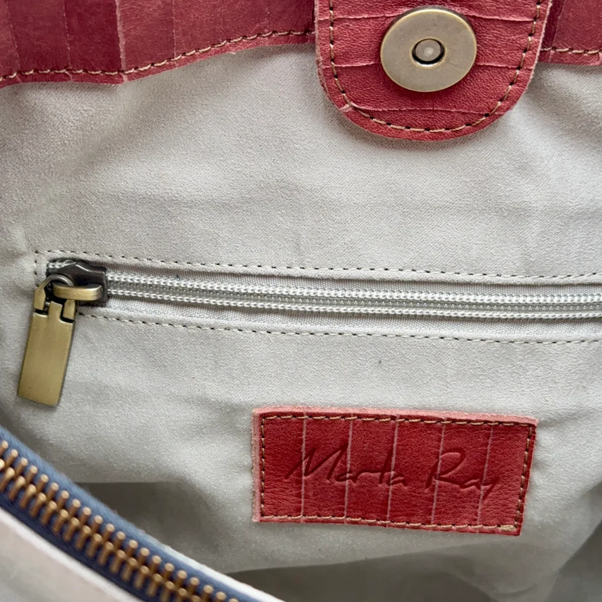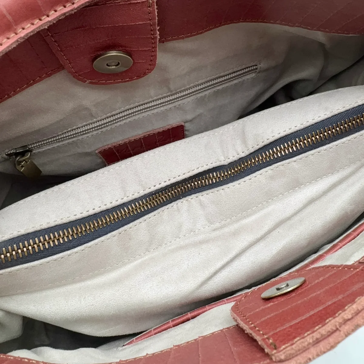 Tasche interne e fodera in alcantara color grigio perla.