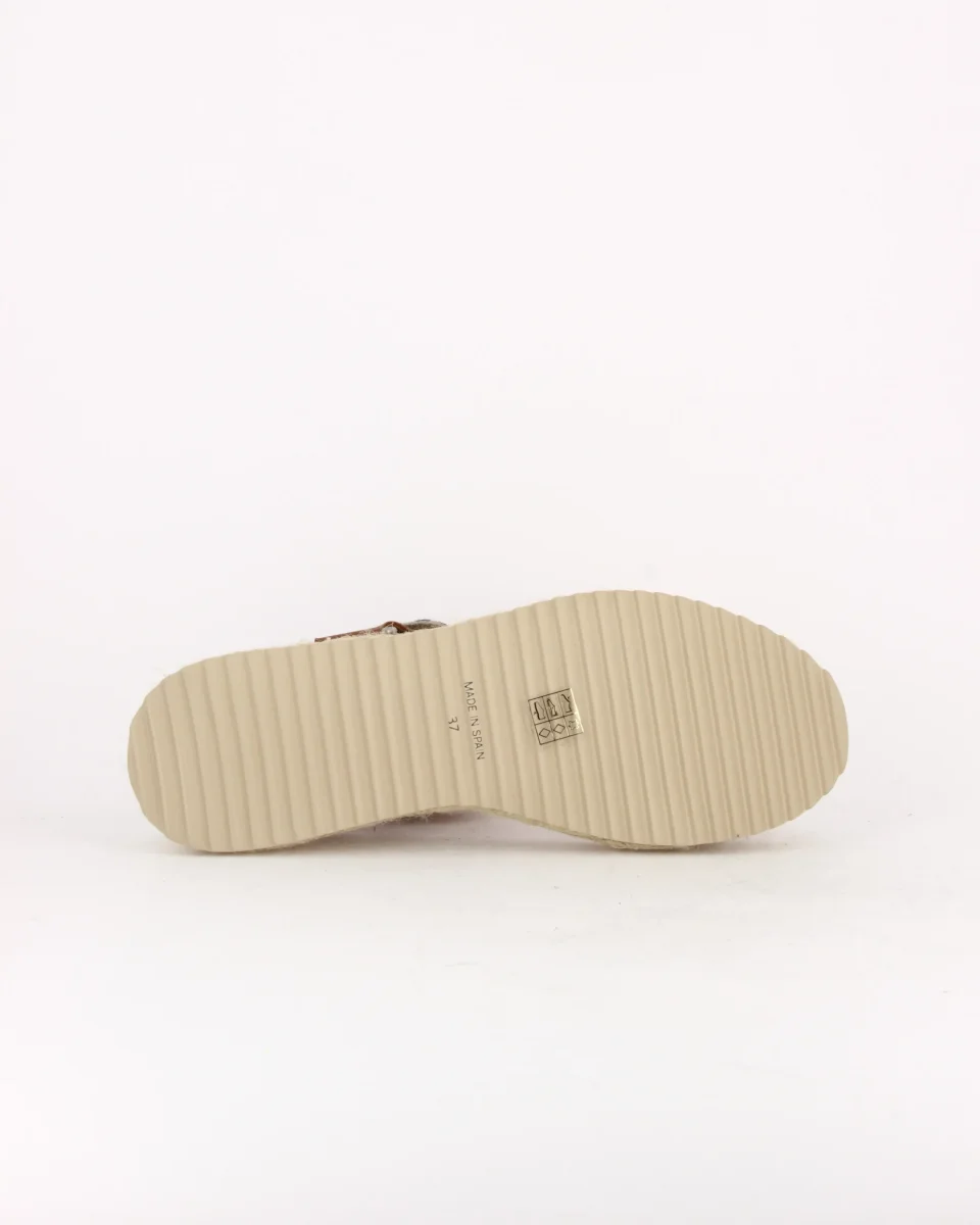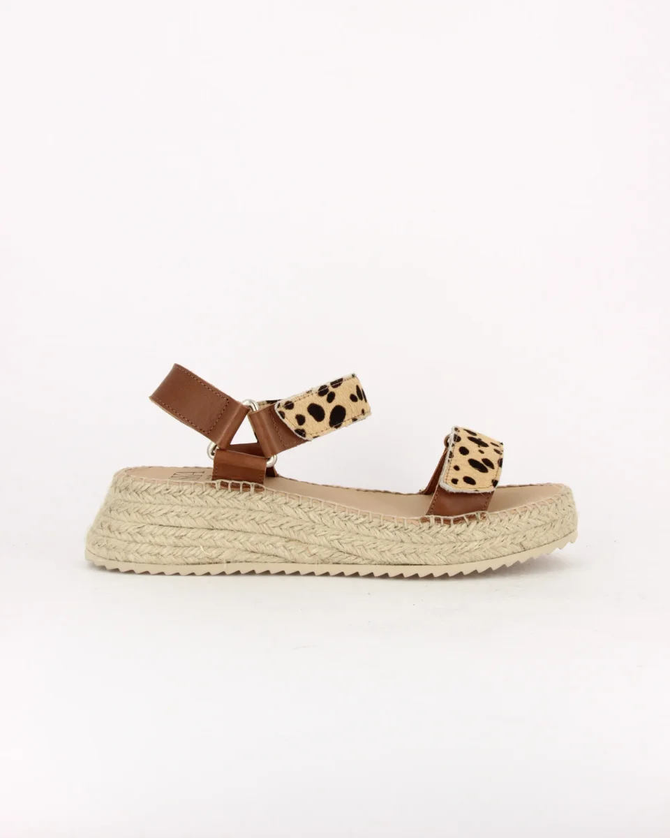 ROMA sandalo in pelle e cavallino con doppia chiusura con velcro. Suola in iute naturale.
