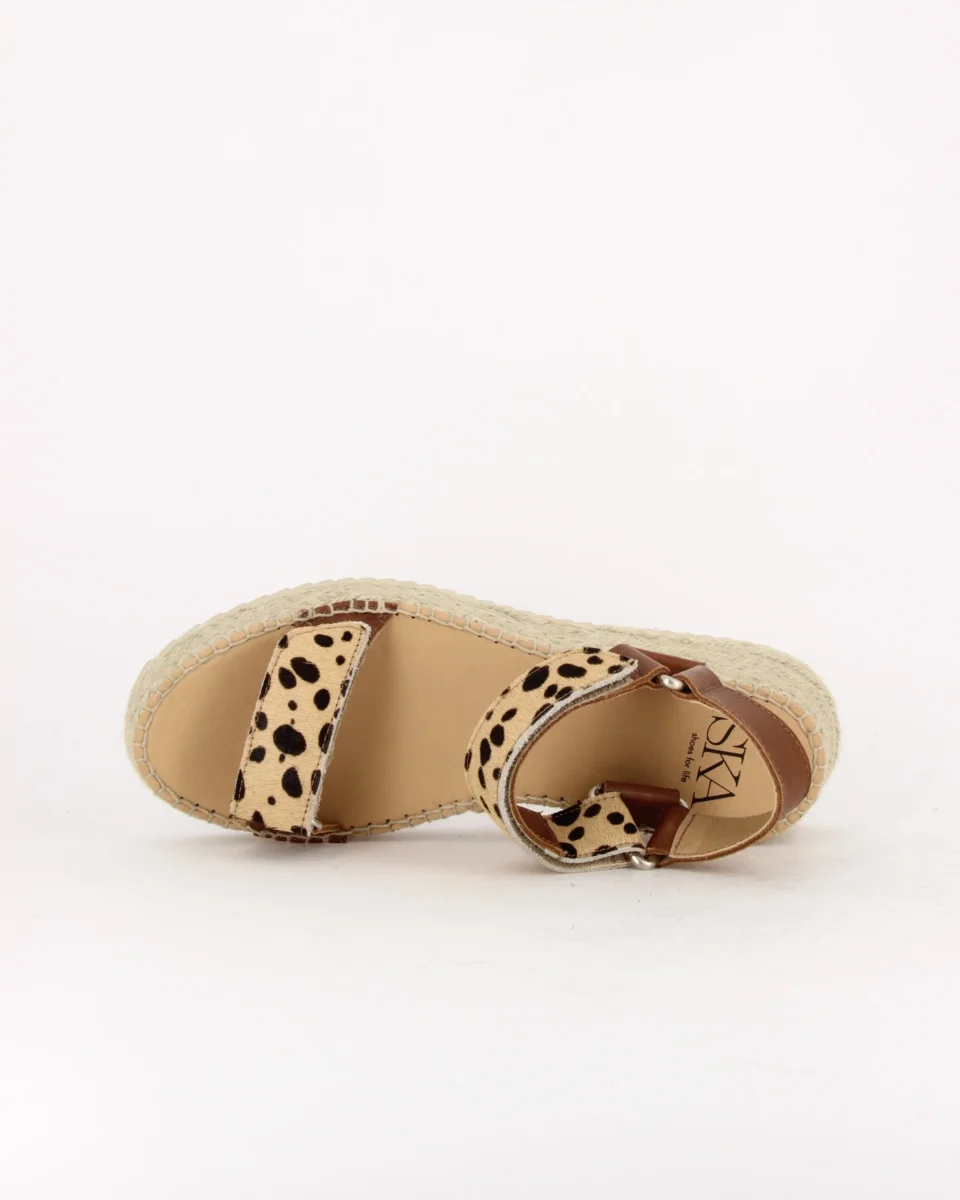 ROMA sandalo in pelle e cavallino con doppia chiusura con velcro. Suola in iute naturale. ROMA è un sandalo in pelle con inserti in cavallino. La fascia frontale è regolabile per adattarsi meglio al piede. La suola è in iute naturale e cucita a mano.