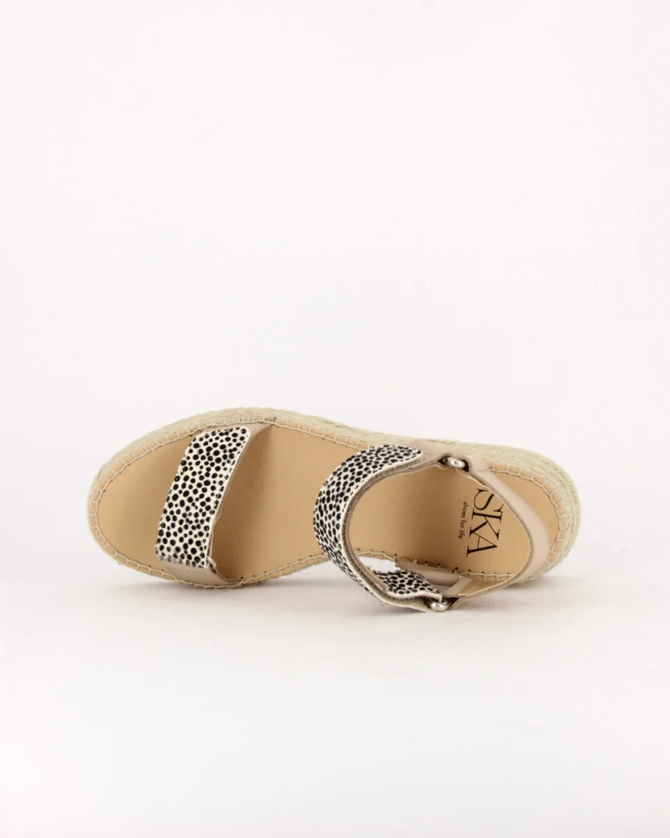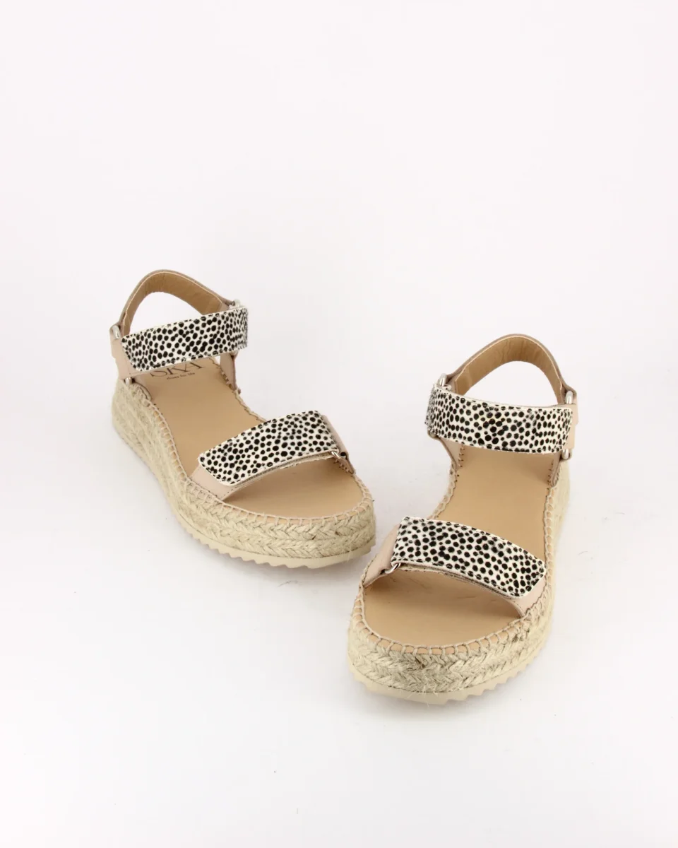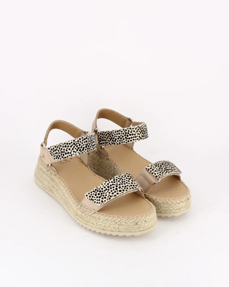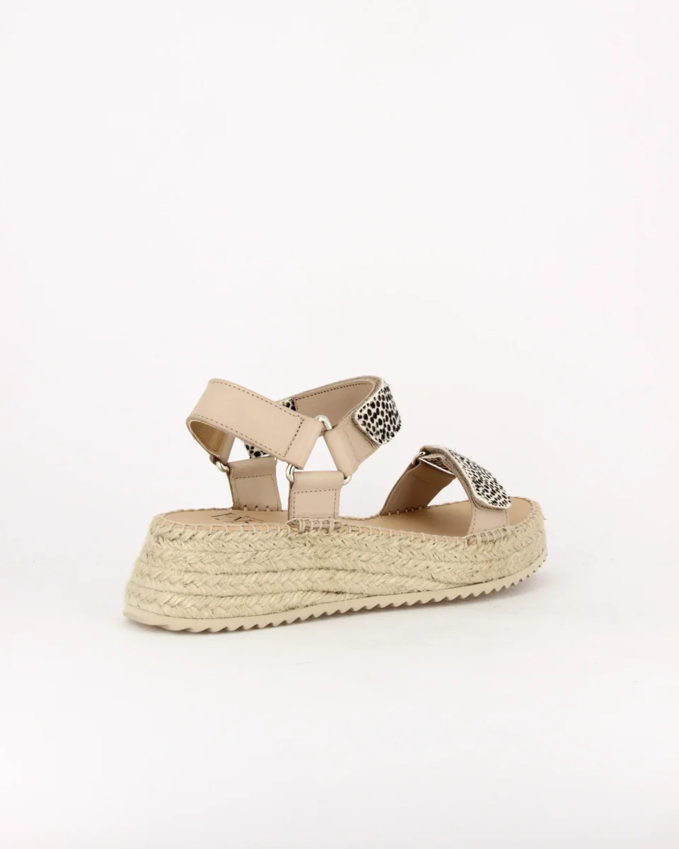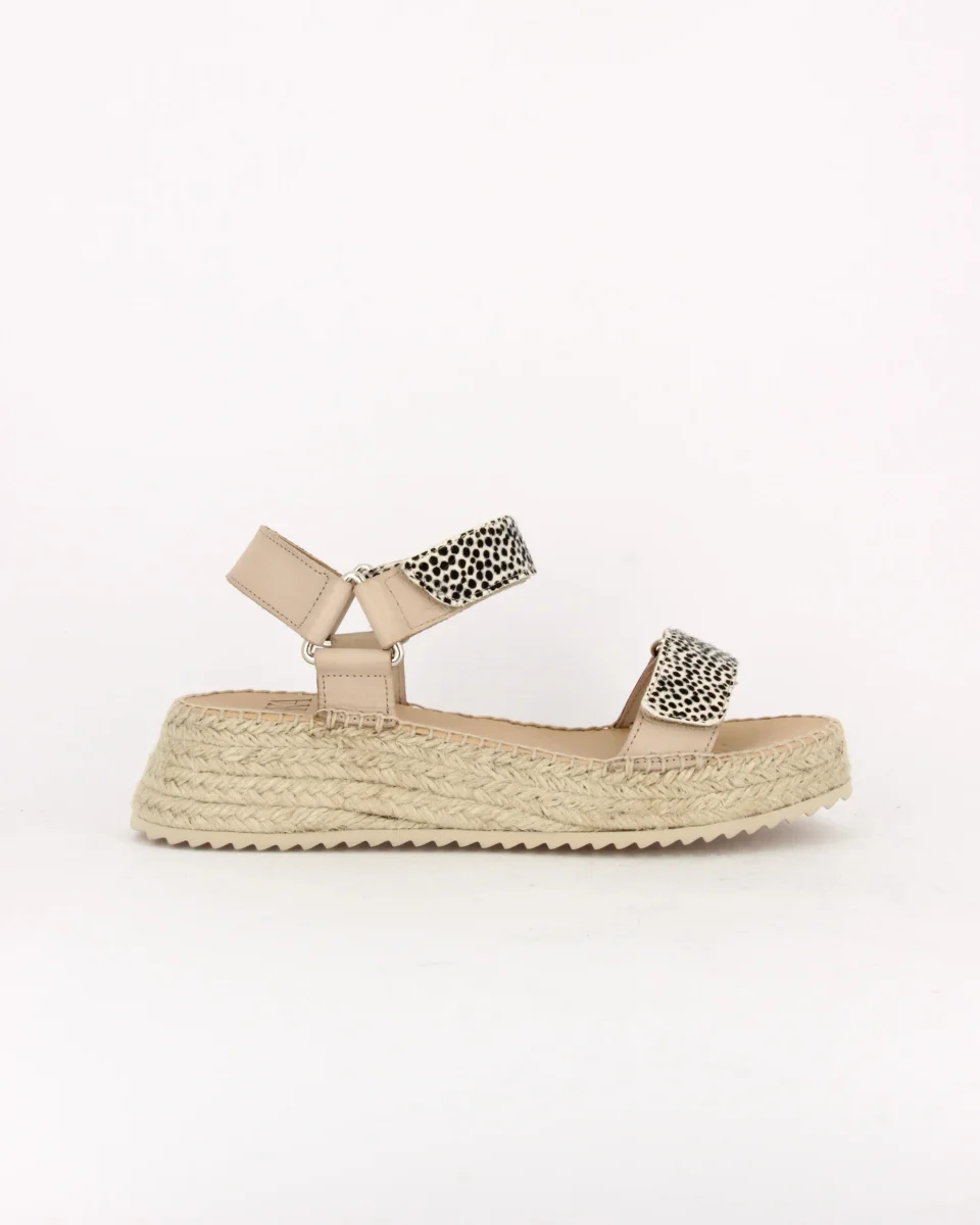 ROMA sandalo in pelle e cavallino con doppia chiusura con velcro. Suola in iute naturale.