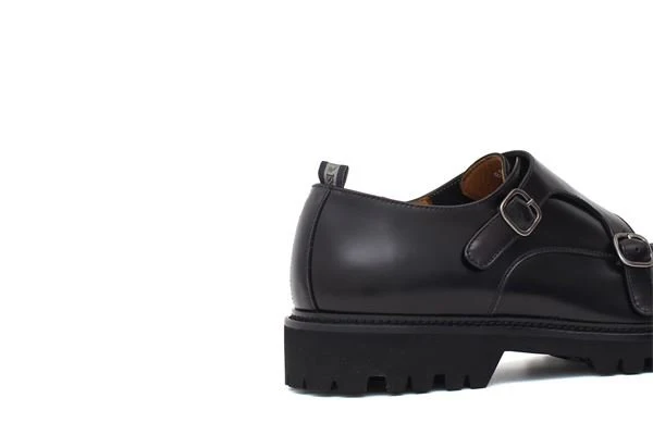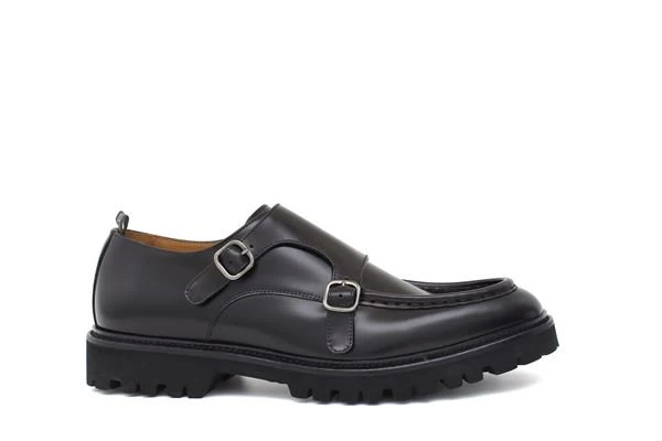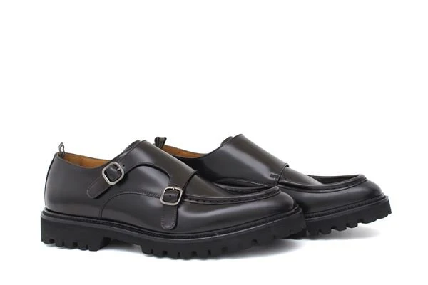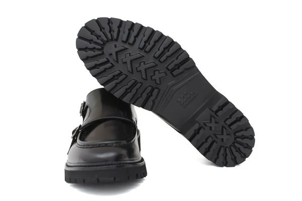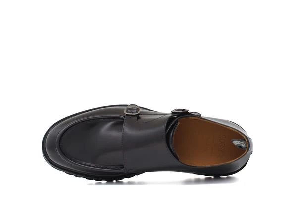 Mocassino in pelle nero, doppia fibbia, fondo gomma antiscivolo con carrarmato, altezza 3cm