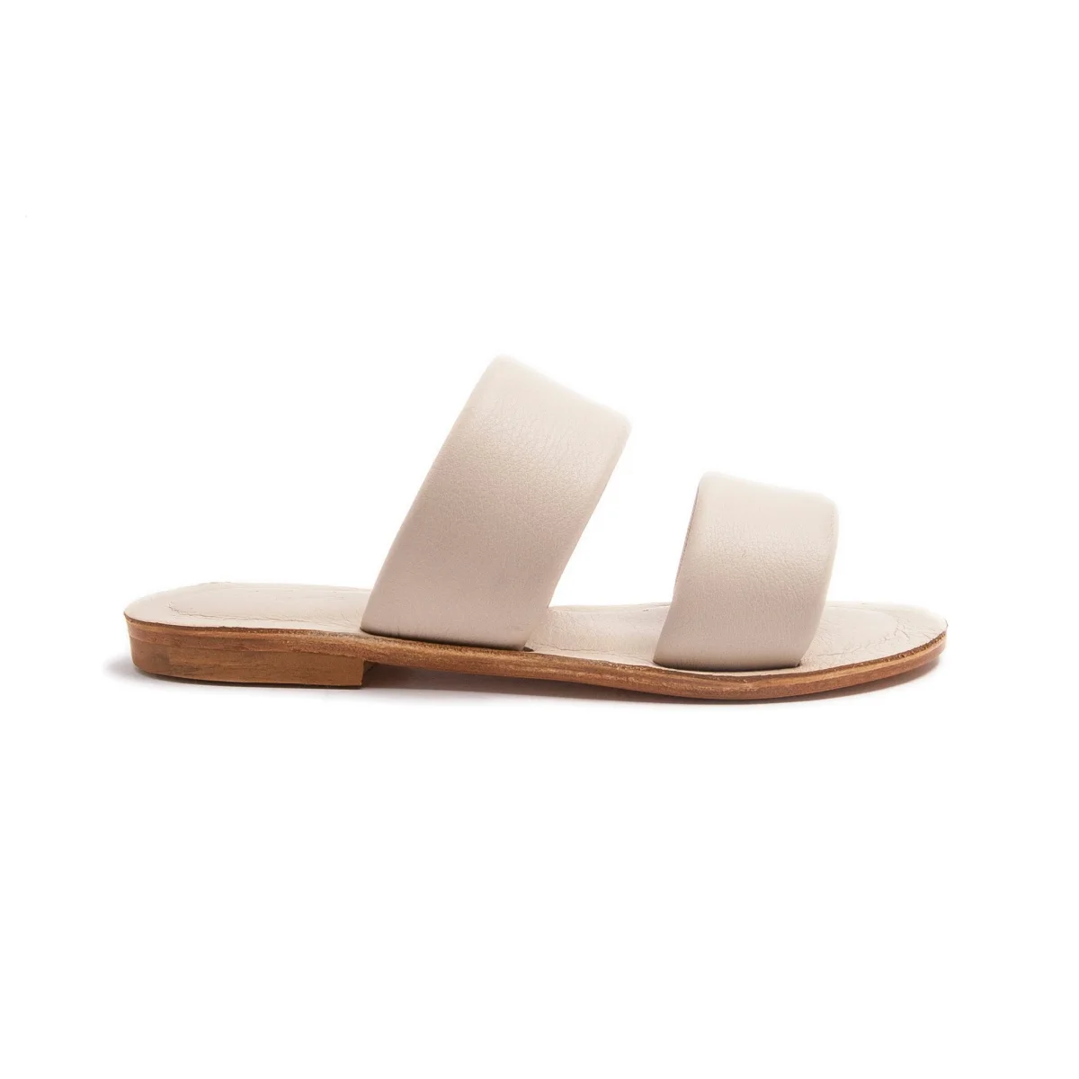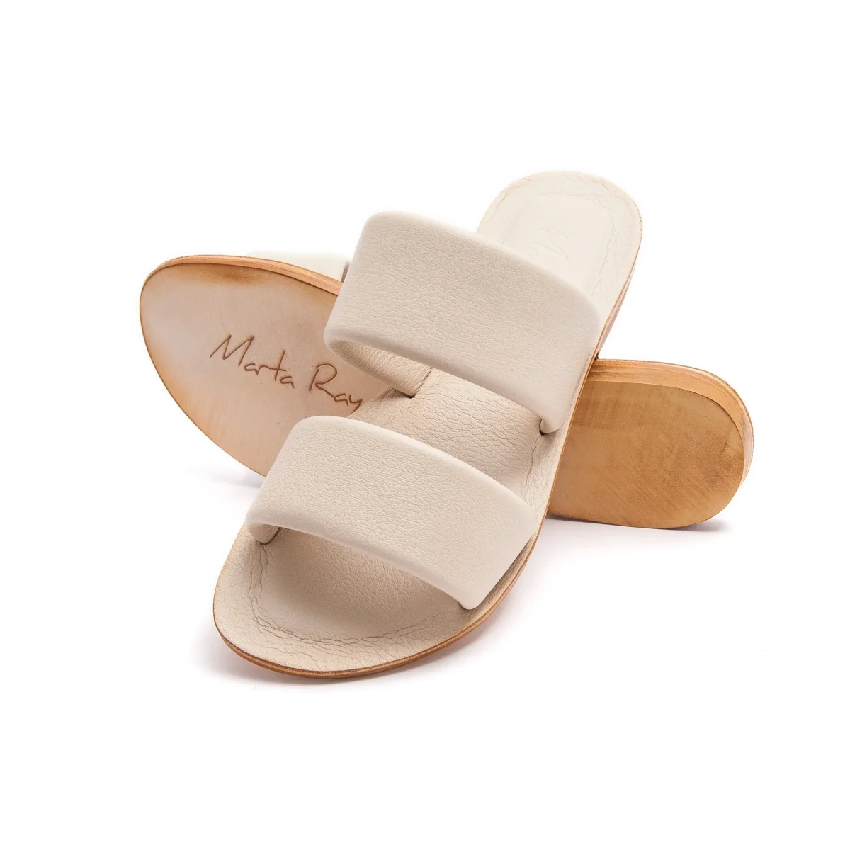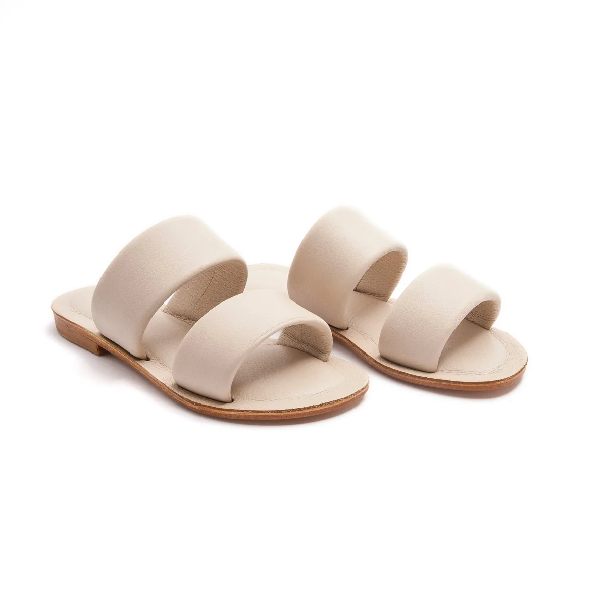 Sandalo a due fasce in morbida pelle pieno fiore resa ancora più soffice dall’imbottitura.