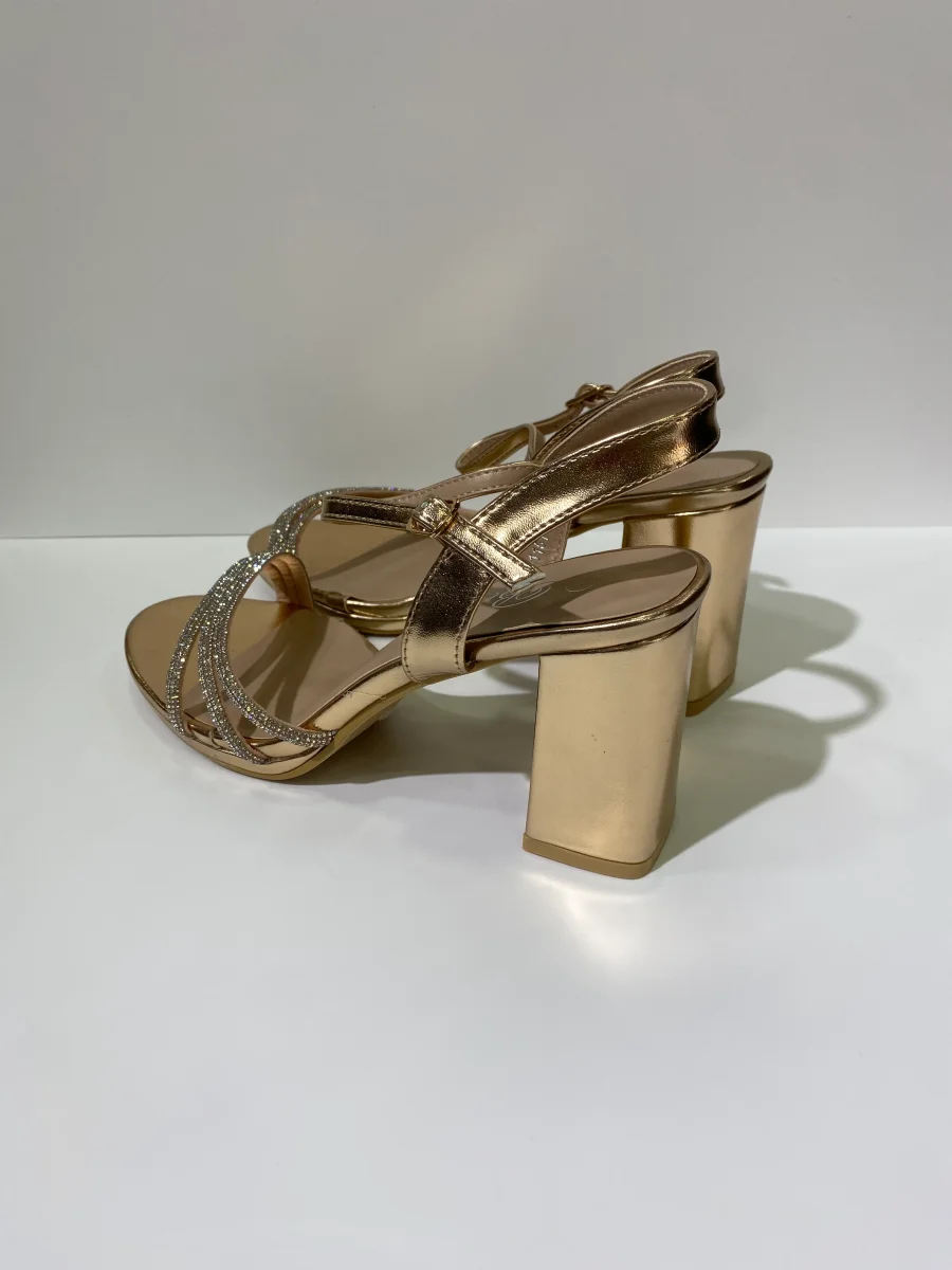 Sandali champagne eleganti con tacco largo
