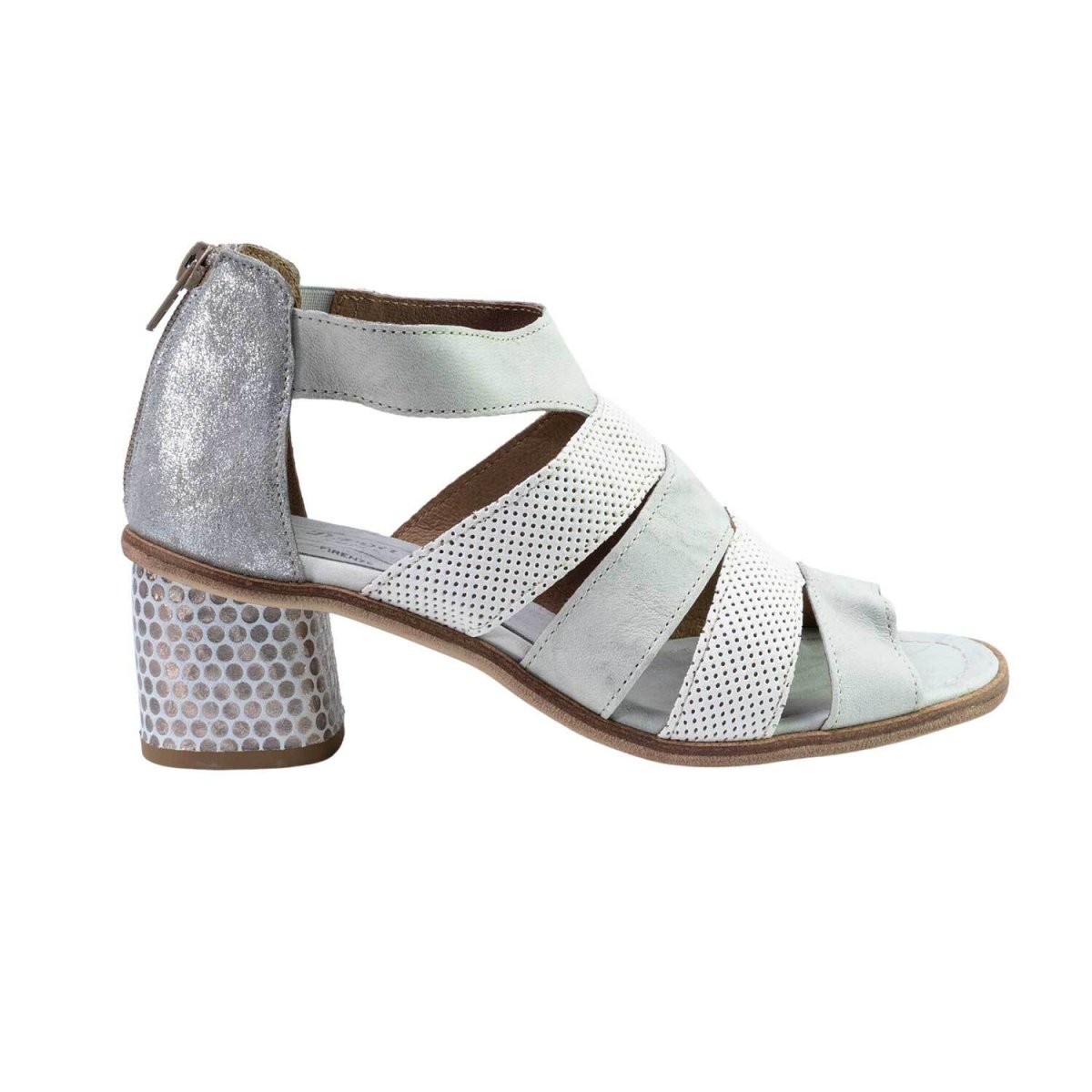 Sandali da donna in pelle di camoscio lavorati e trattati artigianalmente, design a “gabbia”. il tacco a pois misura circa 6cm. Ideali per chi cerca un sandalo versatile che si adatta sia per ambiti lavorativi sia per la classica passeggiata in citta. La suola è interamente in cuoio.