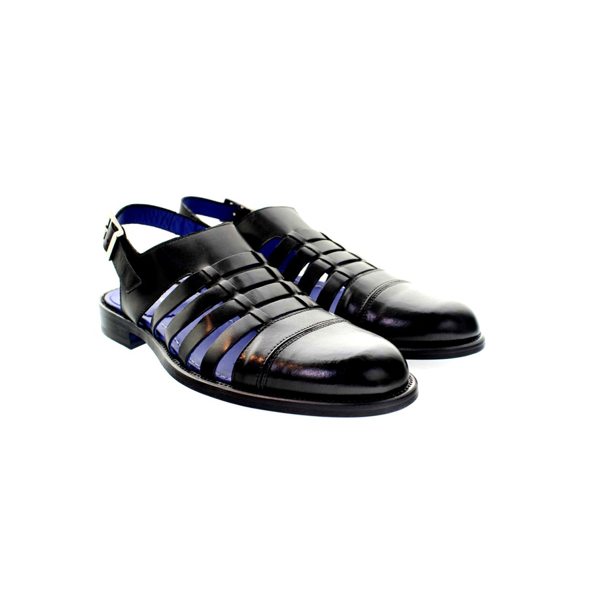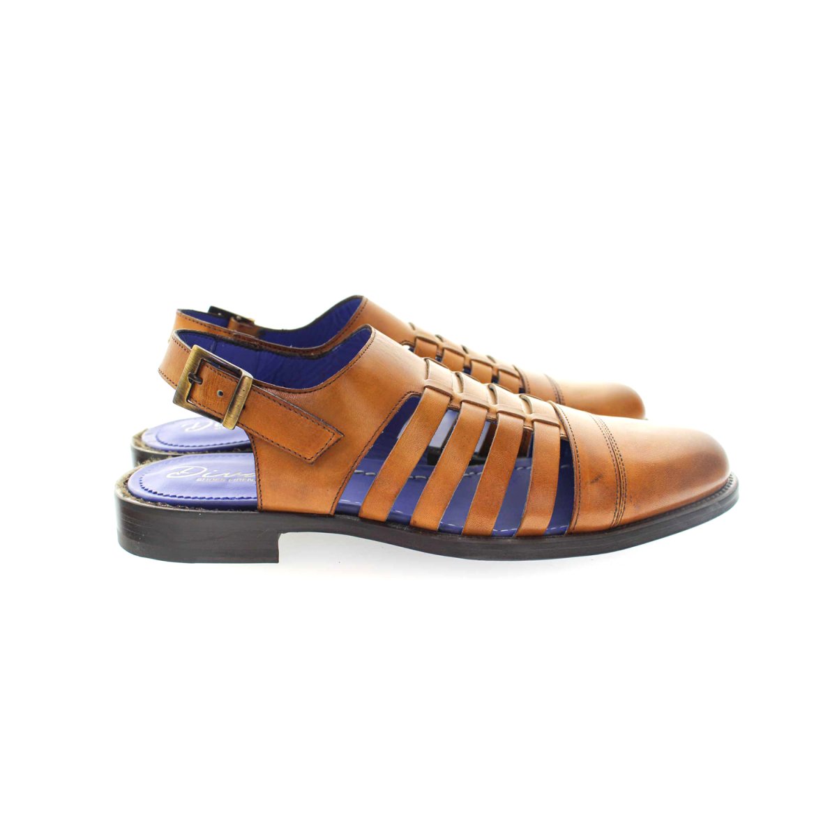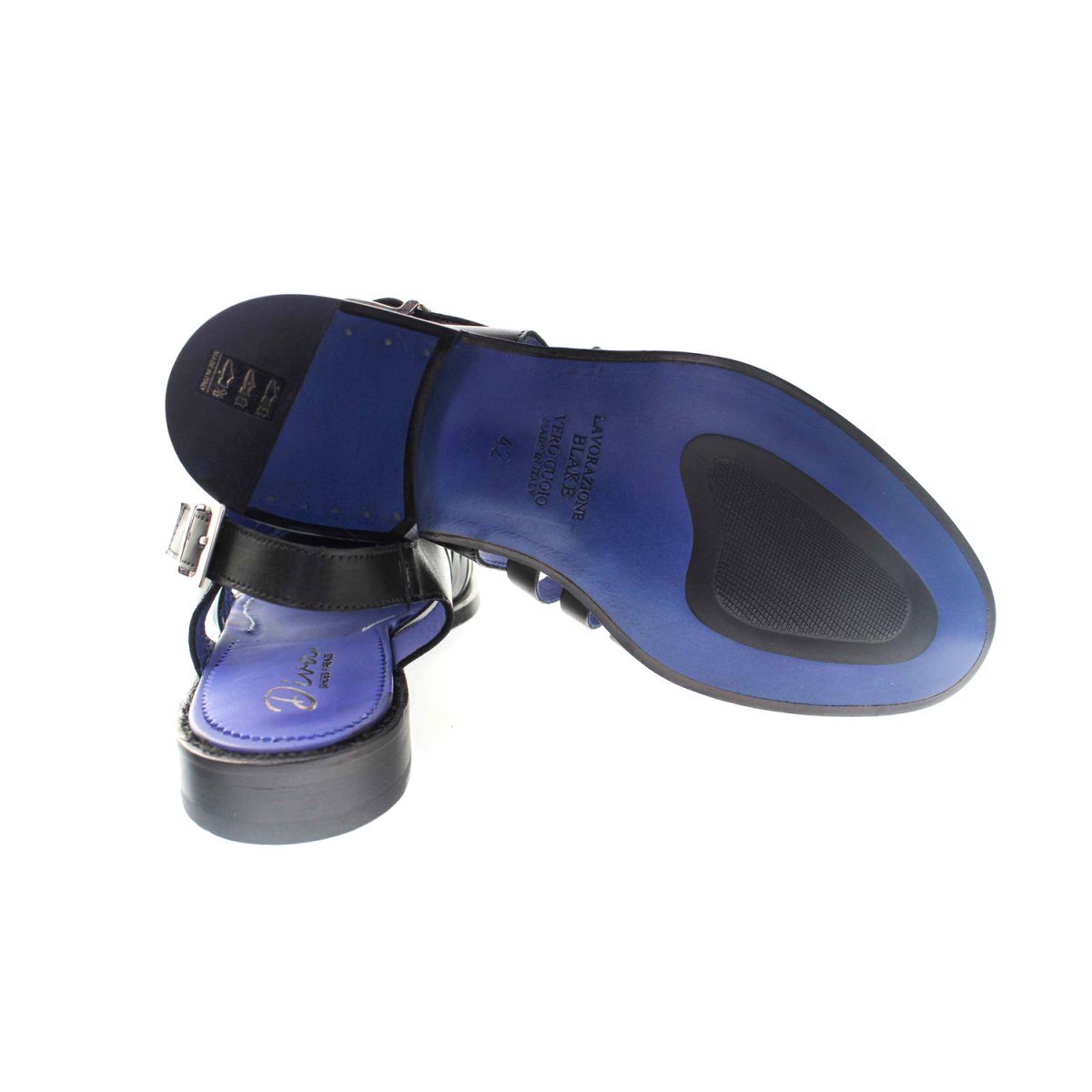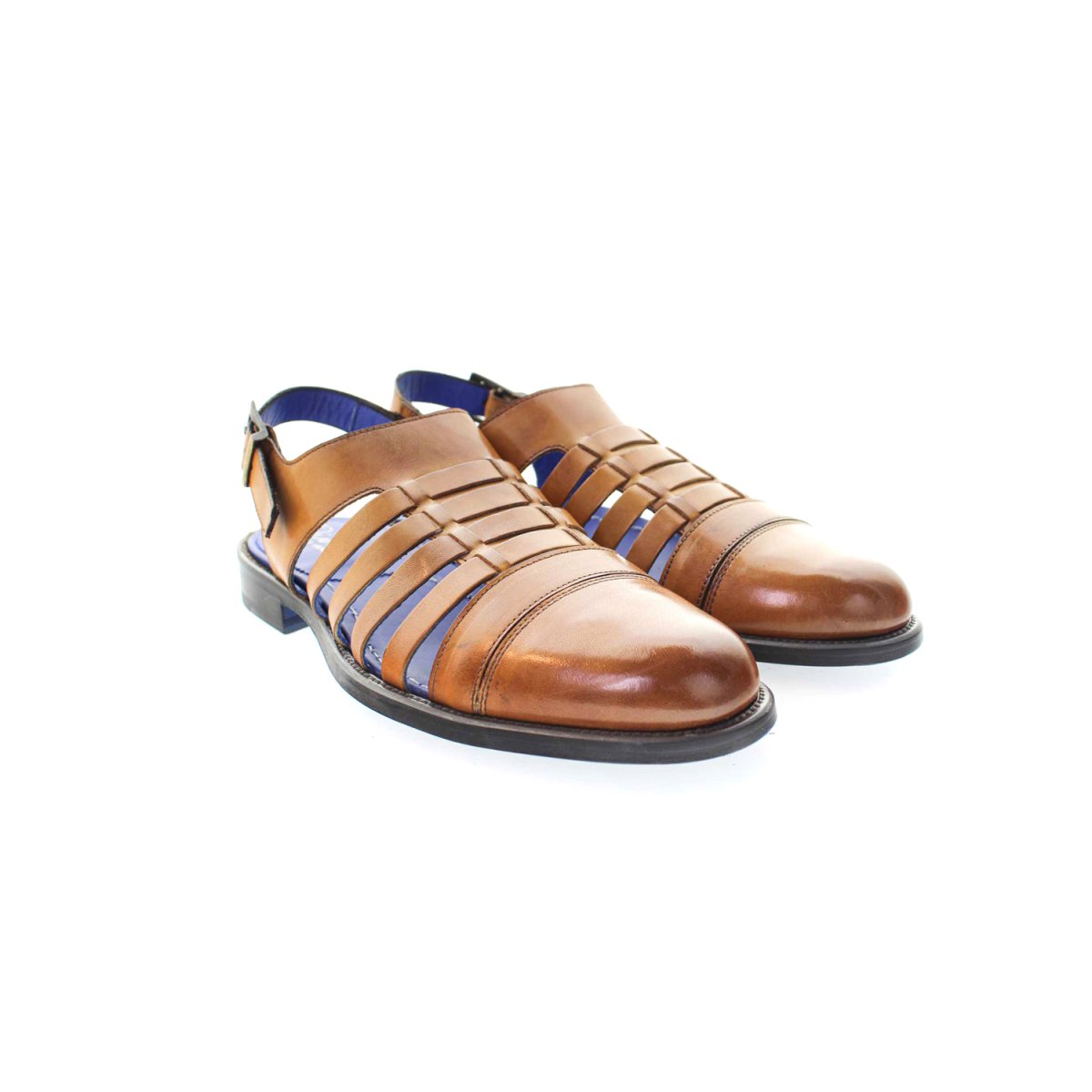 Sandalo a ragnetto da uomo in pelle di vitellino trattato e colorato artigianalmente, ideali per chi è alla ricerca di una calzatura comoda senza dover rinunciare all’autenticità dell’artigianato italiano.La suola è in cuoio con l’aggiunta di inserti in gomma antiscivolo che garantiscono più attrito al terreno e soprattutto comfort.