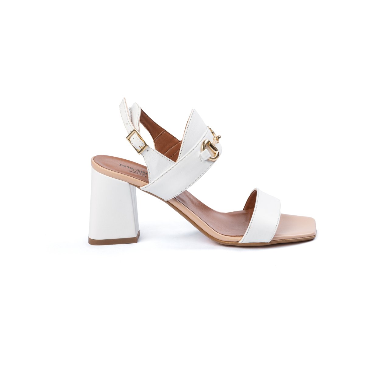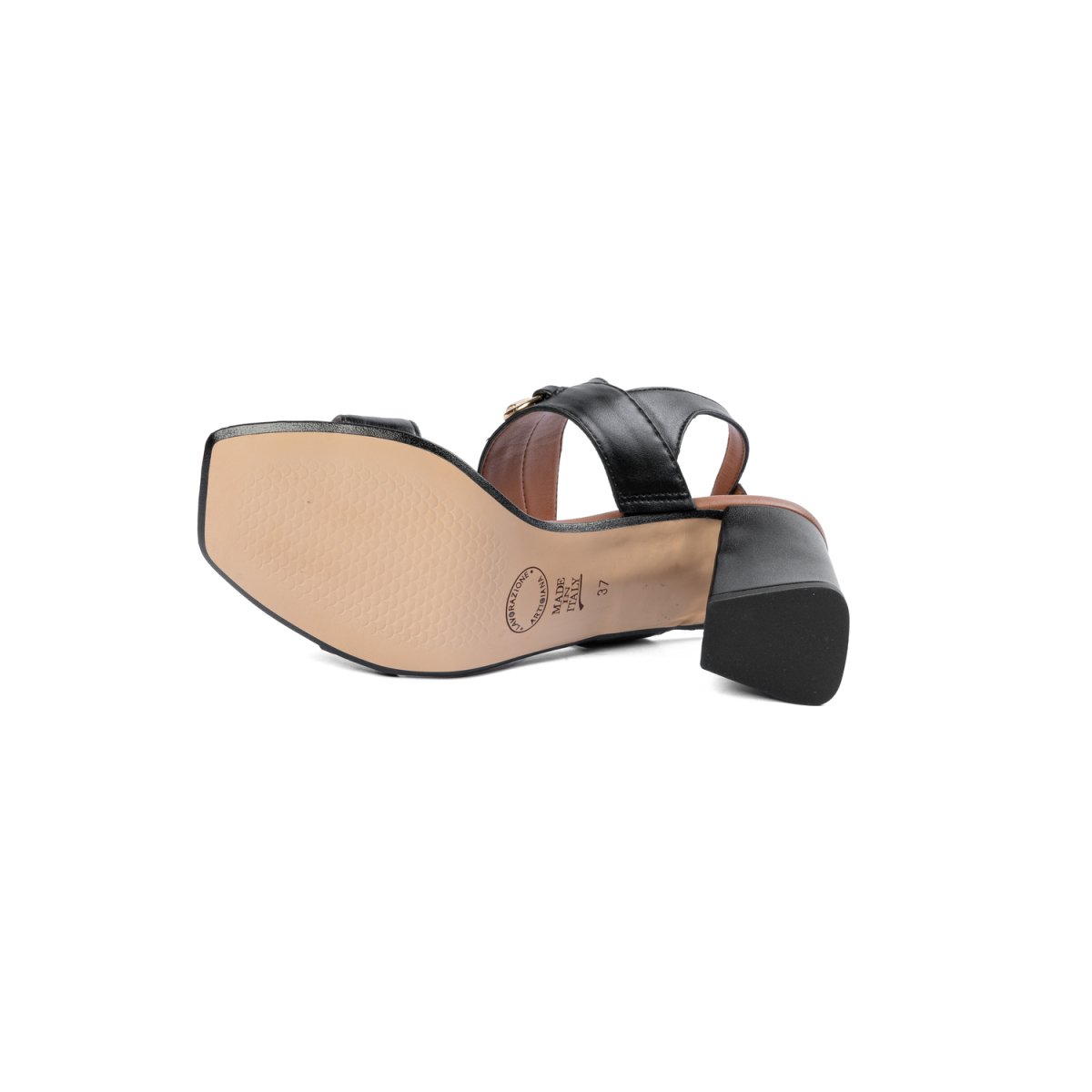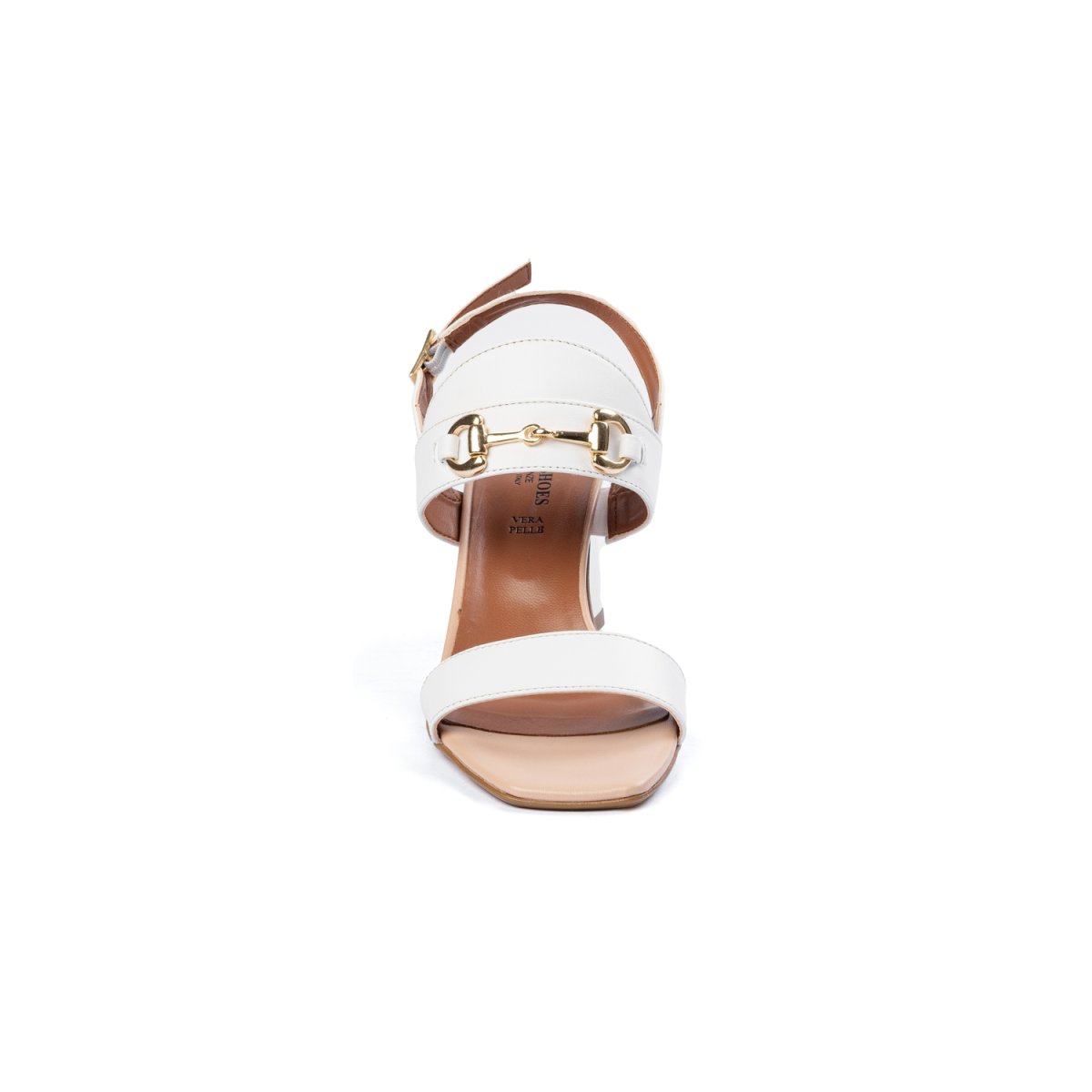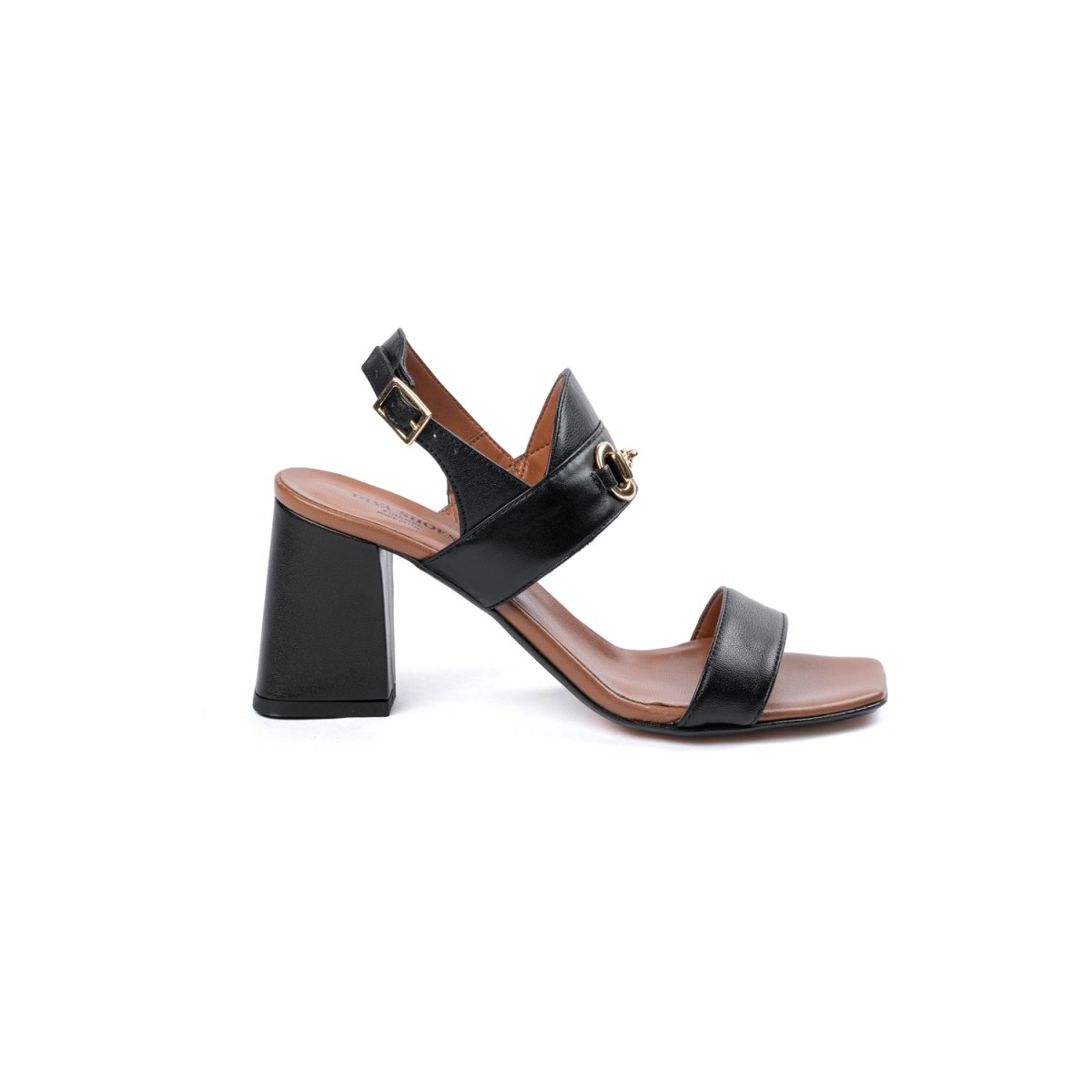 Sandali in pelle di vitellino trattati artigianalmente, presentati con una fascia che copre il collo del piede con morsetto gucci, ha una chiusura con cinturino alla caviglia. Il tacco misura 6cm; ottimi per chi è alla ricerca di un sandalo elegante e soprattutto comodo da usare la sera o il giorno durante le classiche passeggiate in città. La suola è interamente in cuoio.