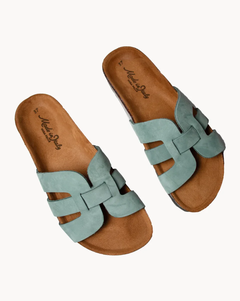 Colore articolo: TurcheseTomaia in camoscioIntersuola in sugheroSuola in gommaCalzata: acquista la tua solita tagliaMade in ItalyComposizione: Principale: 100% Vacchetta Dettagli: Sughero