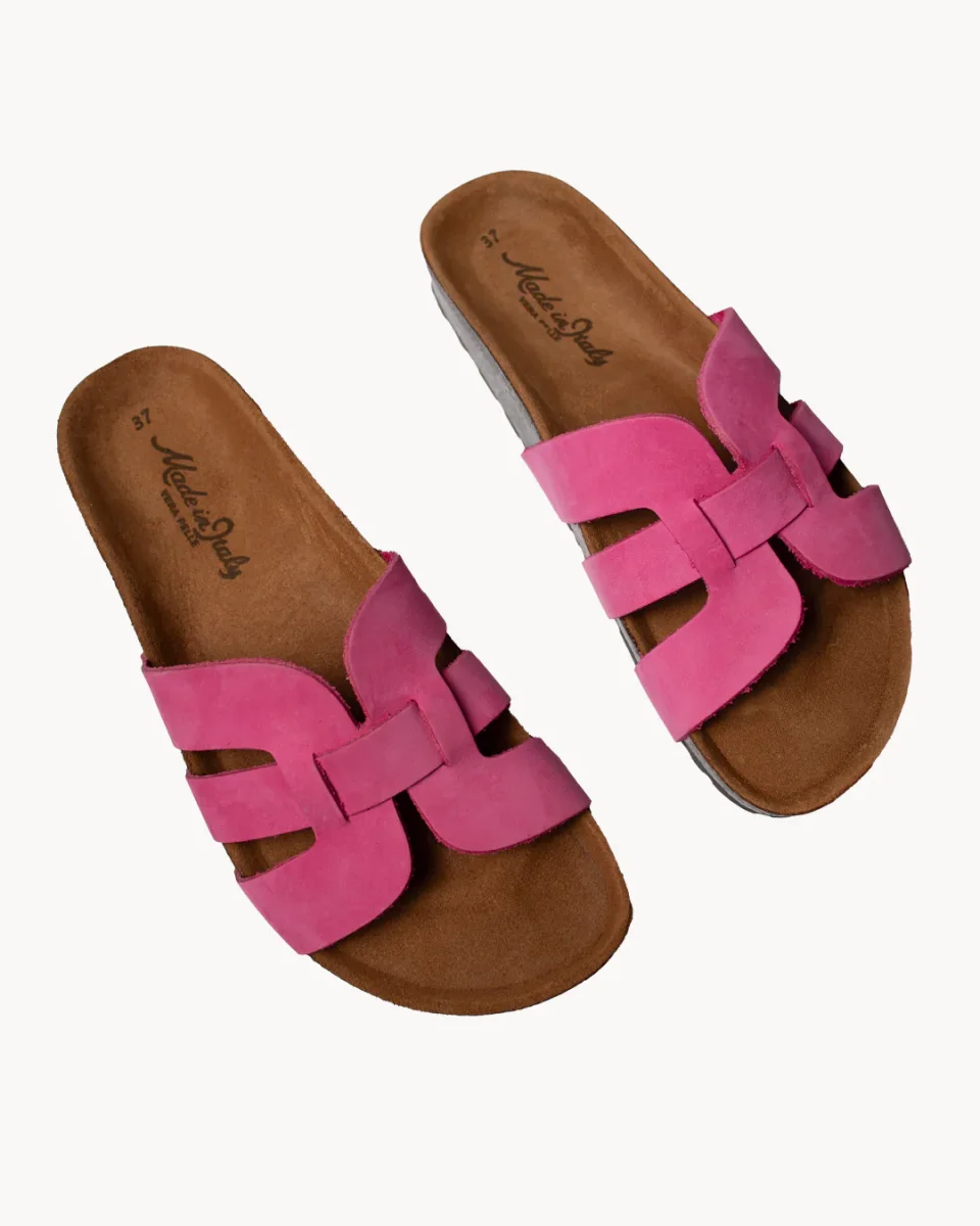 Colore articolo: FucsiaTomaia in camoscioIntersuola in sugheroSuola in gommaCalzata: acquista la tua solita tagliaMade in ItalyComposizione: Principale: 100% Vacchetta Dettagli: Sughero
