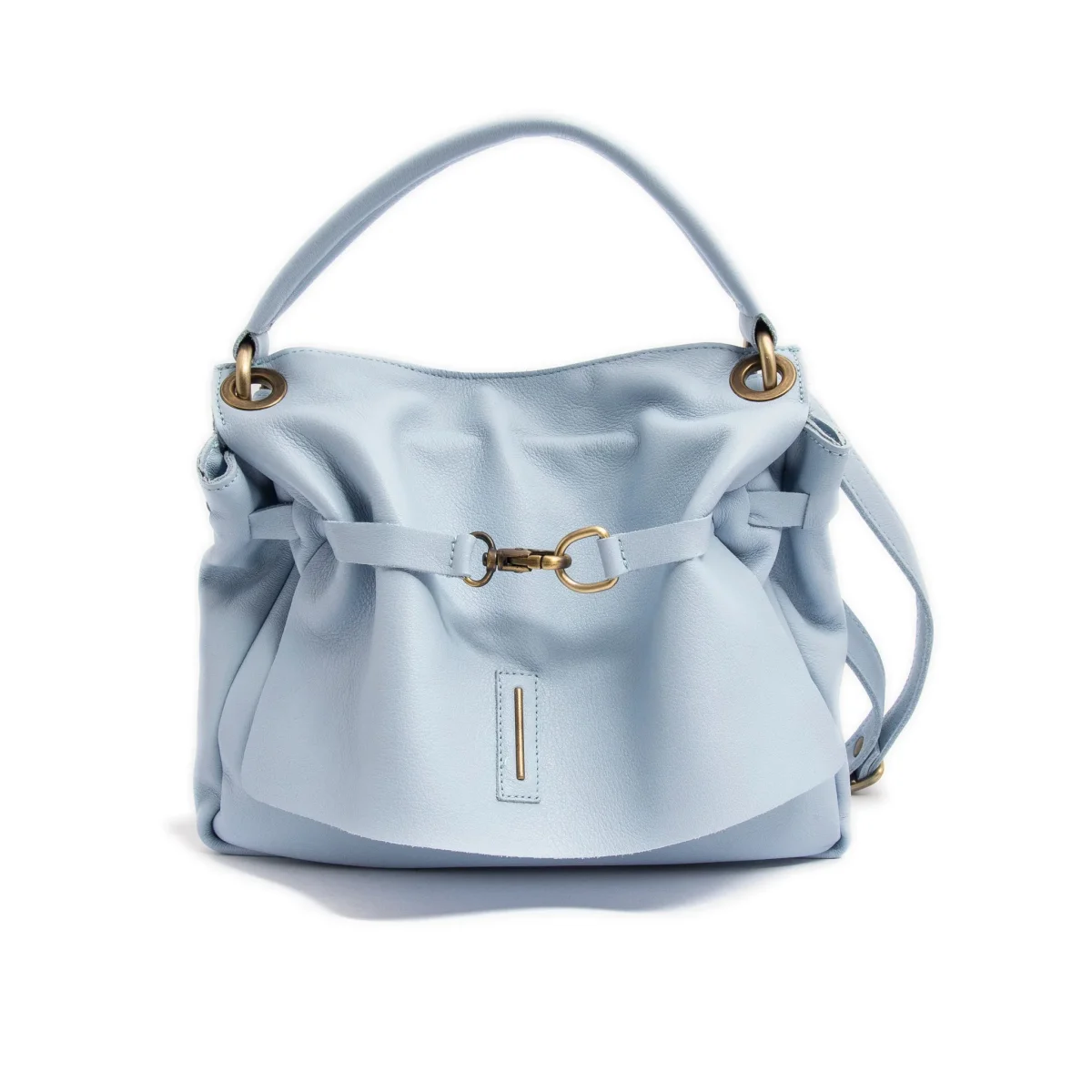 Sandy, nonostante la dimensione, é capiente e ben organizzata. Una ampia tasca esterna chiusa con la zip è posta sotto il manico, molto utile per tenere telefono e chiavi. La morbida patta nasconde l’apertura fermata da chiusura magnetica. All’interno è presente una seconda tasca con zip. La tracolla è rimovibile e regolabile. Manico leggermente imbottito. […]