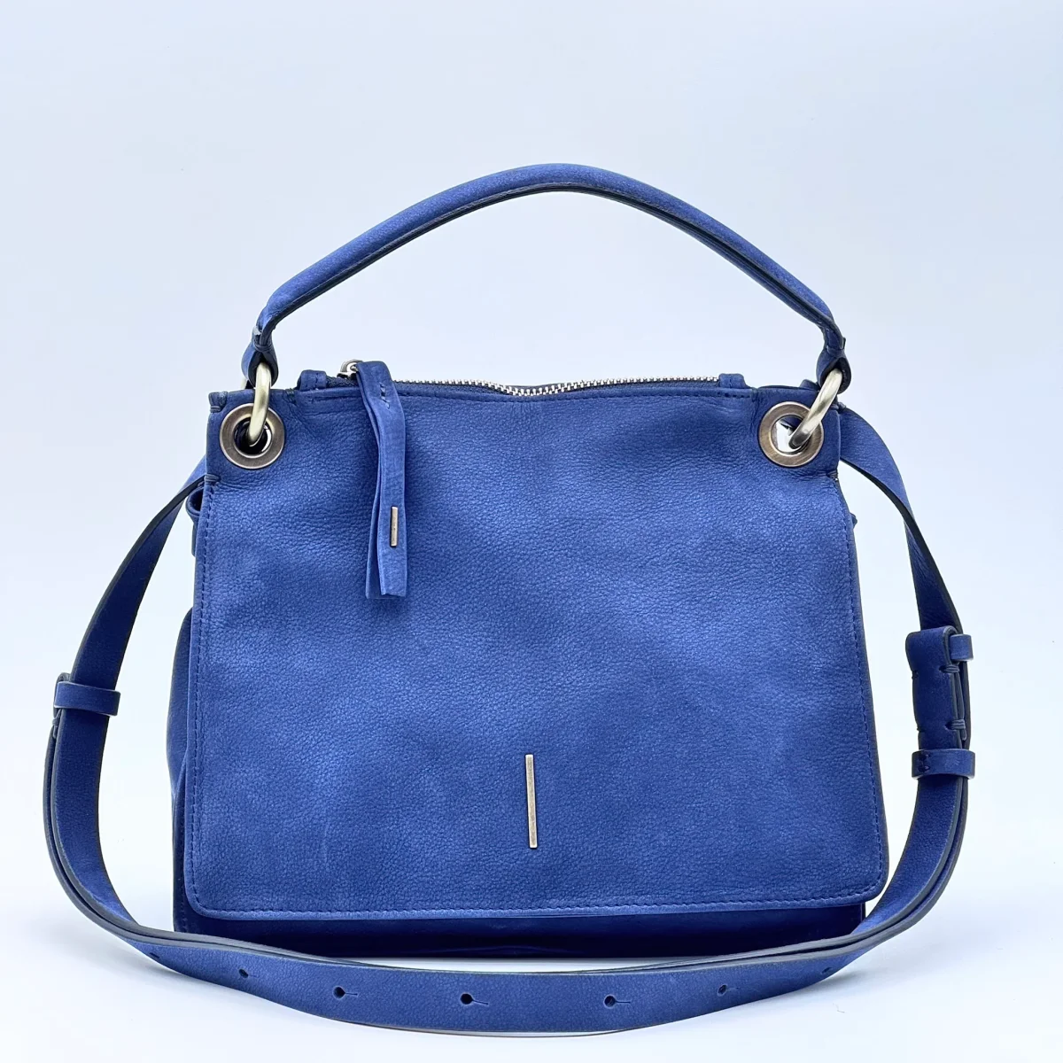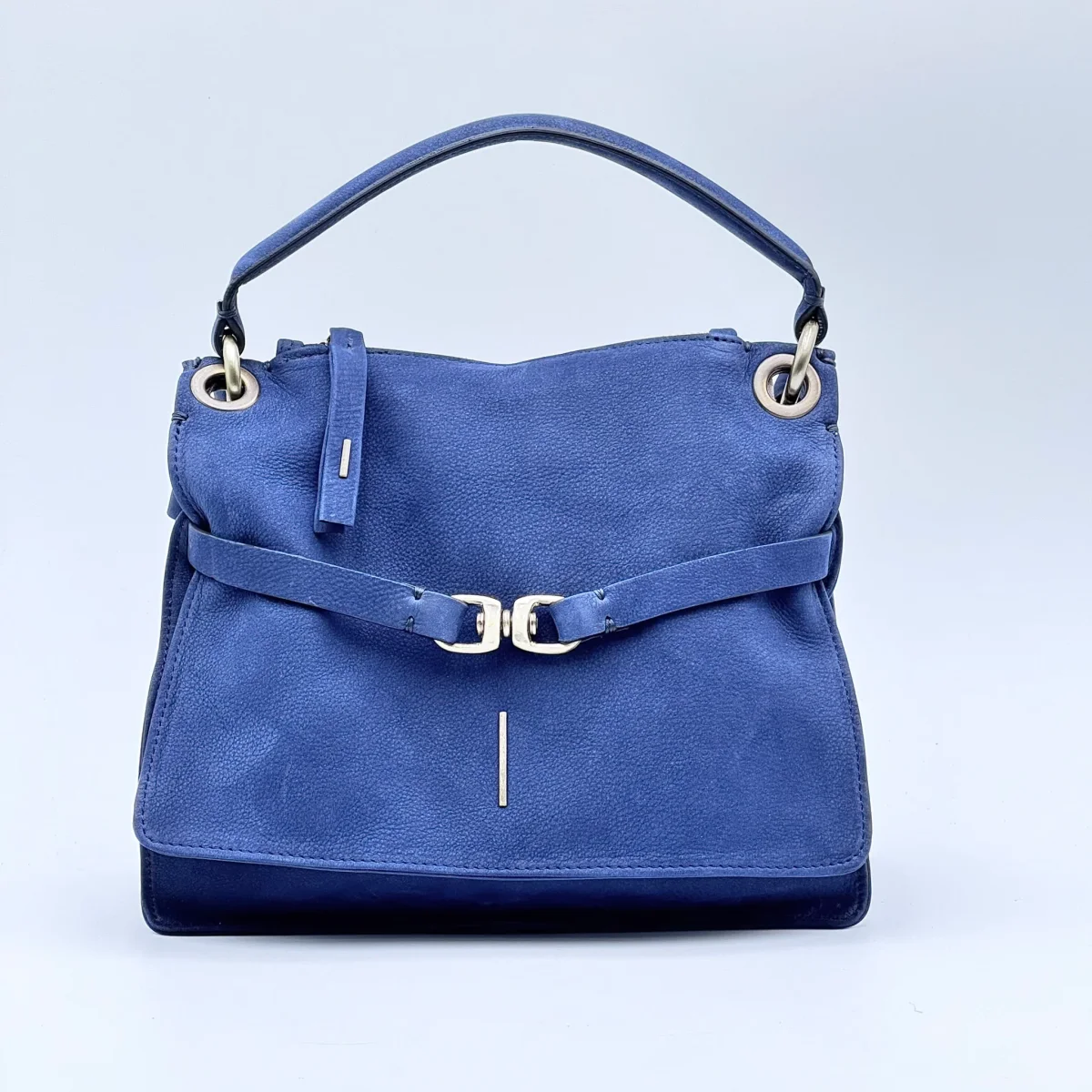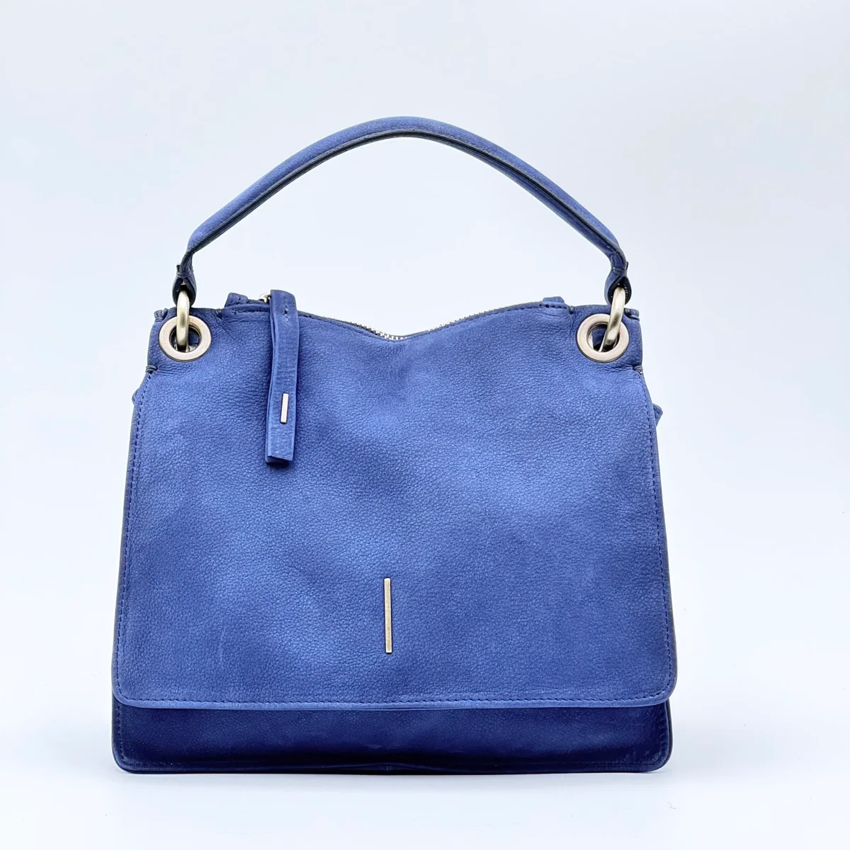 Borsa compatta e strutturata in pelle effetto nabucato Long Beach color nautica, un blu profondo e raffinato. Linee morbide, patta doppiata con chiusura magnetica e profili rimboccati per un’eleganza essenziale.
