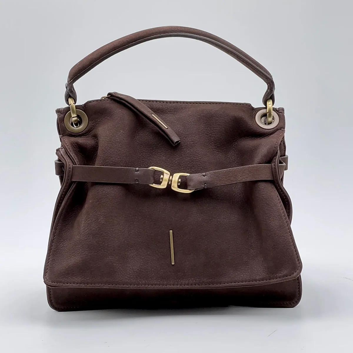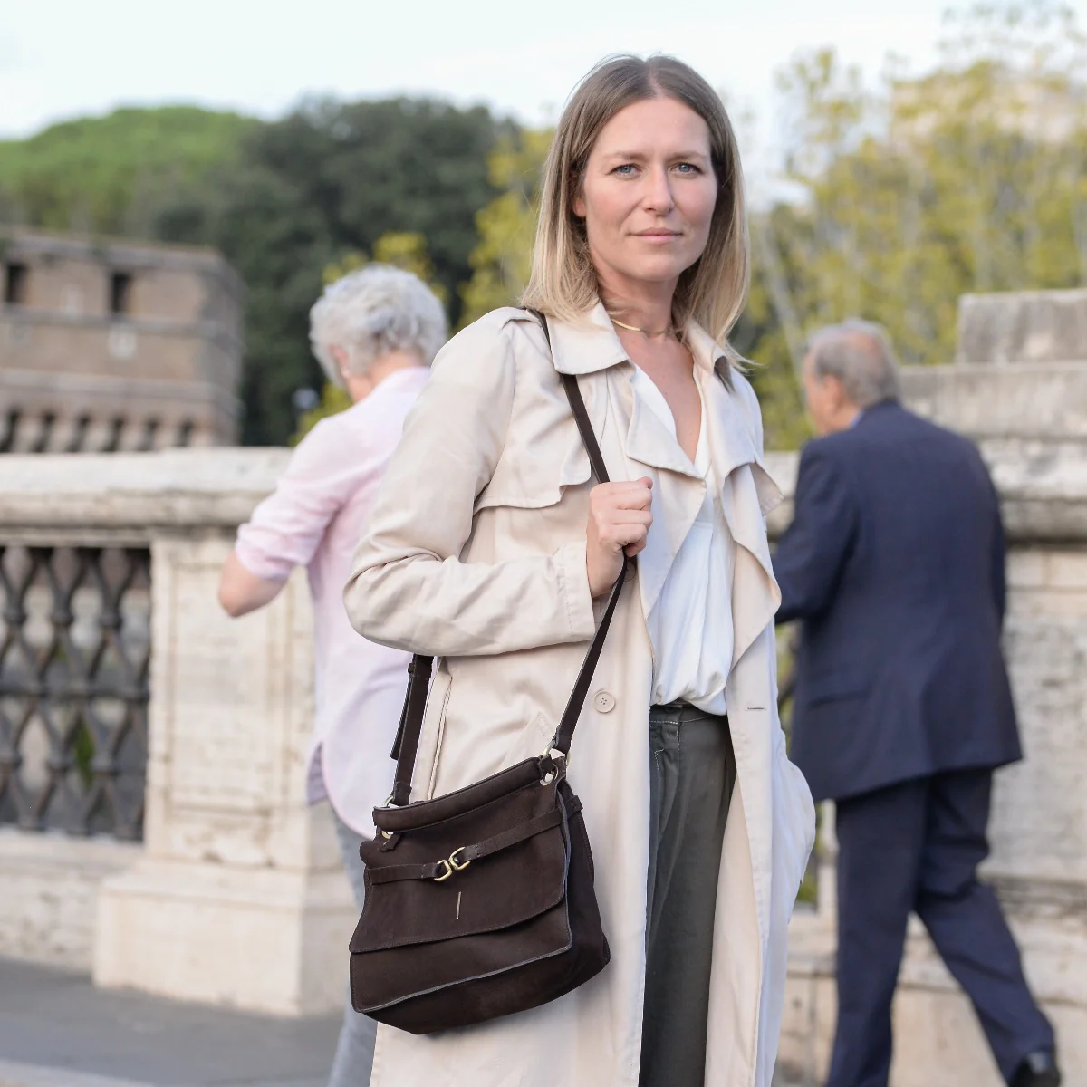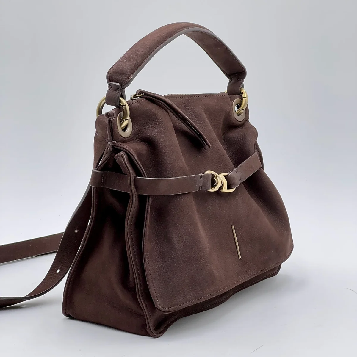 Borsa compatta e strutturata in pelle effetto nabucato Long Beach color testa di moro, un marrone intenso. Linee morbide, patta doppiata con chiusura magnetica e profili rimboccati per un’eleganza essenziale.
