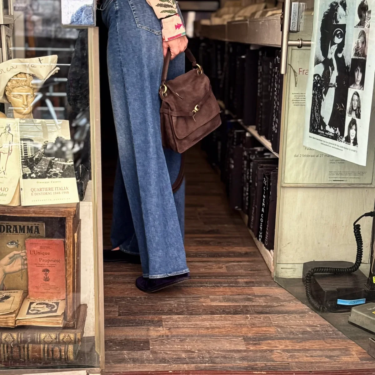 Borsa compatta e strutturata in pelle effetto nabucato Long Beach color testa di moro, un marrone intenso. Linee morbide, patta doppiata con chiusura magnetica e profili rimboccati per un’eleganza essenziale.Dotata di manico imbottito, tracolla regolabile e removibile, tasche interne ed esterne, fodera in microfibra chiara e accessori in ottone spazzolato. DimensioniAltezza: 28 cm, Larghezza: 32 […]