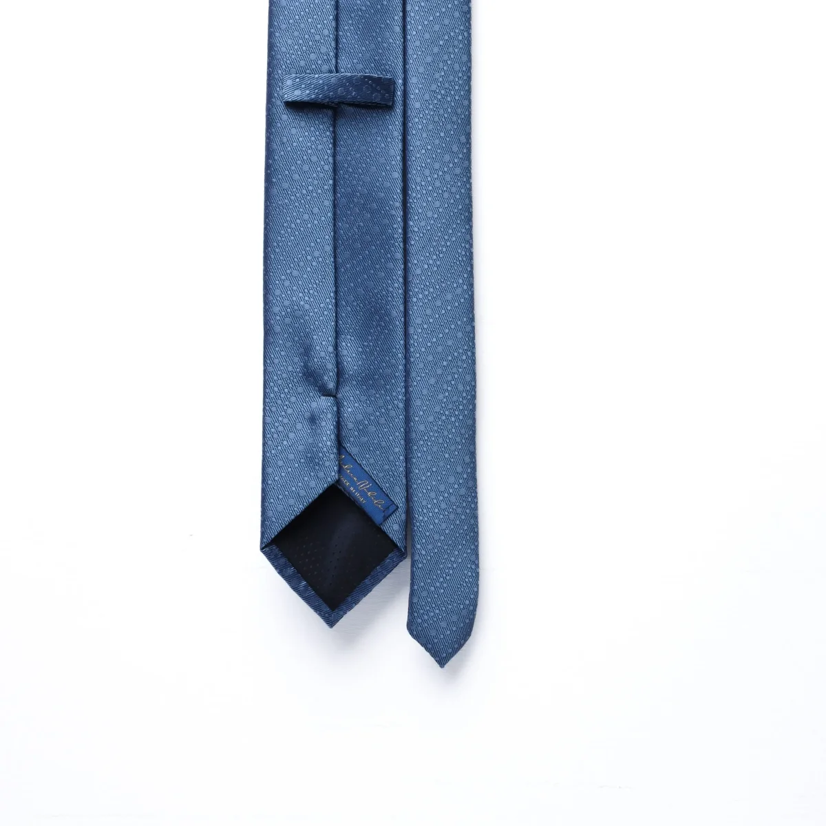 La cravatta Andrea Nobile è interamente artigianale e si distingue per il taglio singolo del tessuto e la qualità della seta italiana. Il motivo a piccole bollicine tono su tono dona al fondo azzurro una texture raffinata e dinamica, ideale per chi desidera distinguersi con discrezione. Modello a 3 pieghe con passante interno e fodera in tessuto. Un accessorio versatile ed elegante, pensato per arricchire con equilibrio tanto l’abito formale quanto il blazer destrutturato.