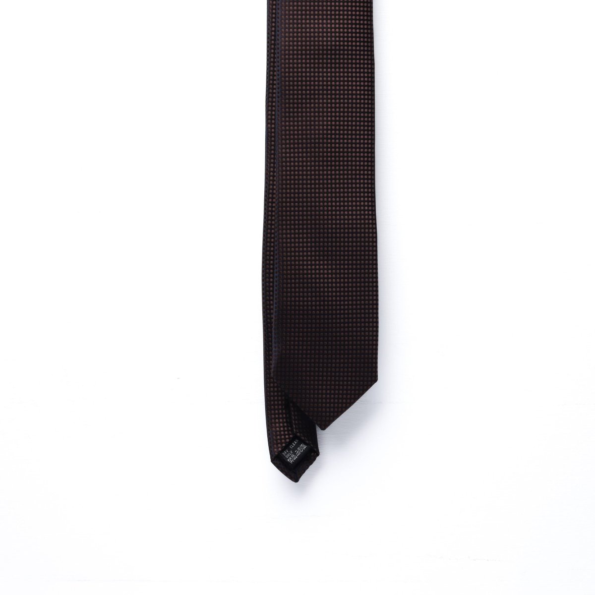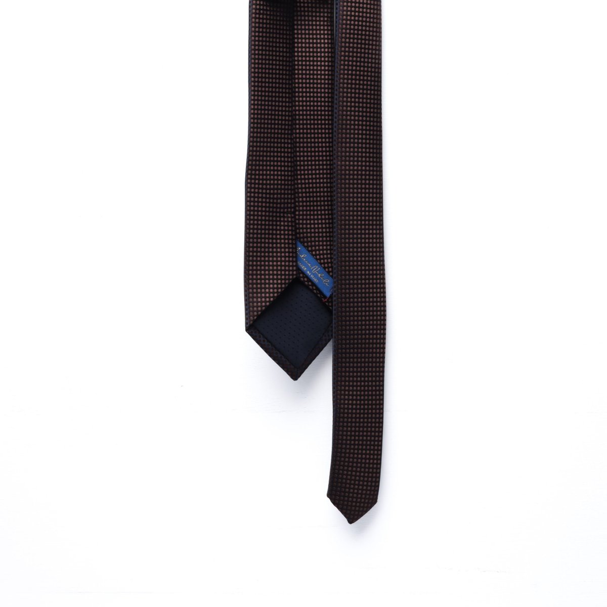 Cravatta in pura seta jacquard dal raffinato motivo micropois tono su tono.