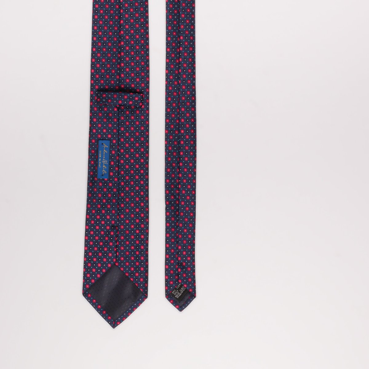 La cravatta Andrea Nobile è interamente artigianale e si distingue per la seta stampata a mano e il taglio singolo del tessuto. Caratterizzata da colori brillanti e fantasie eleganti, presenta una fodera in tessuto. Modello a 3 pieghe con passante interno.