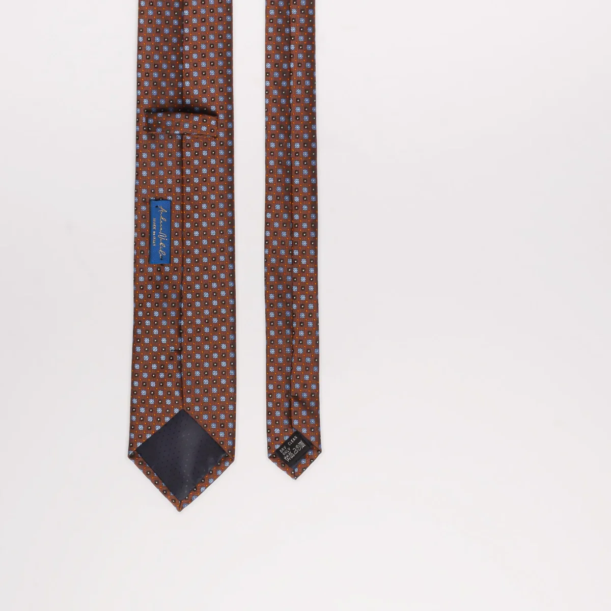 La cravatta Andrea Nobile è interamente artigianale e si distingue per la seta stampata a mano e il taglio singolo del tessuto. Caratterizzata da colori brillanti e fantasie eleganti, presenta una fodera in tessuto. Modello a 3 pieghe con passante interno.