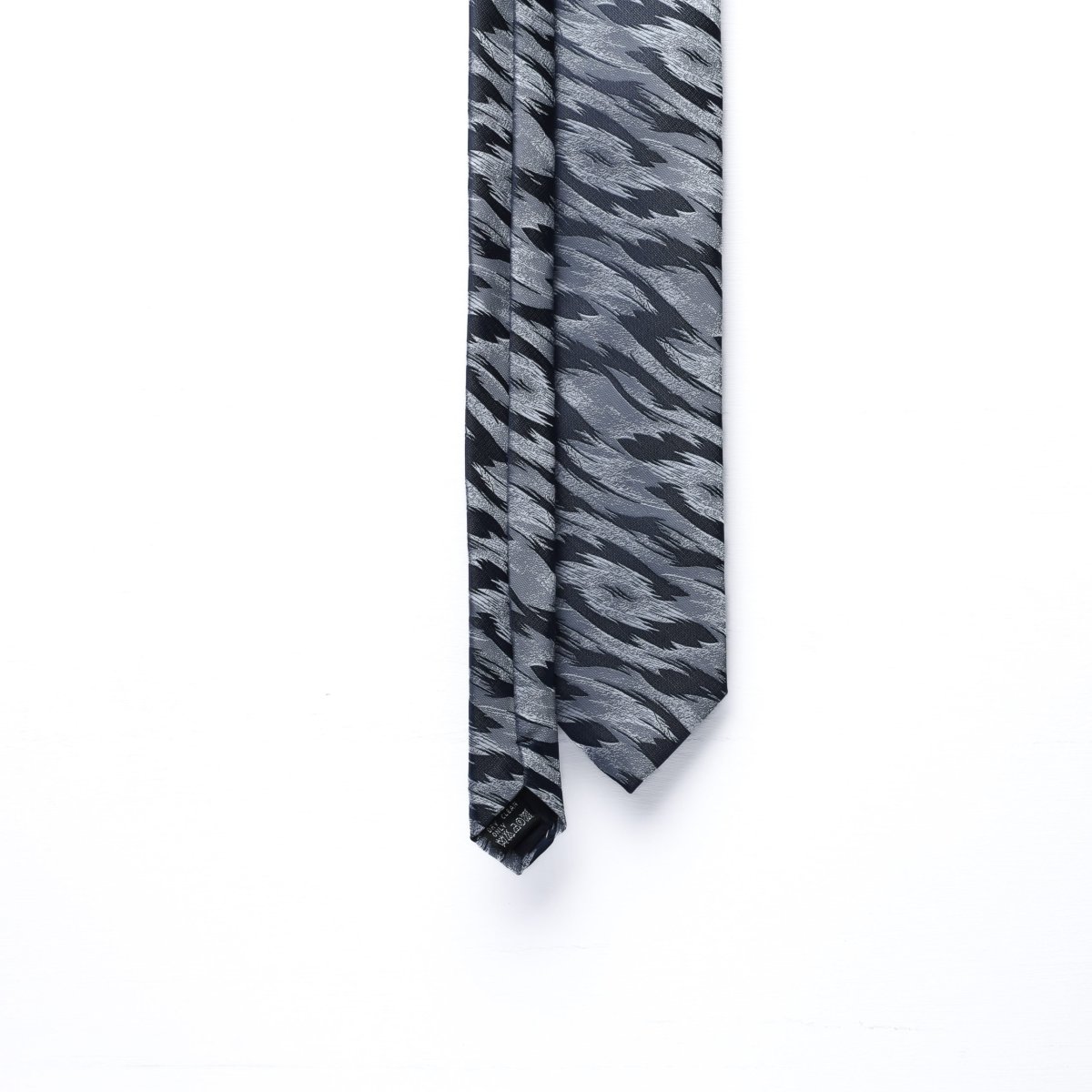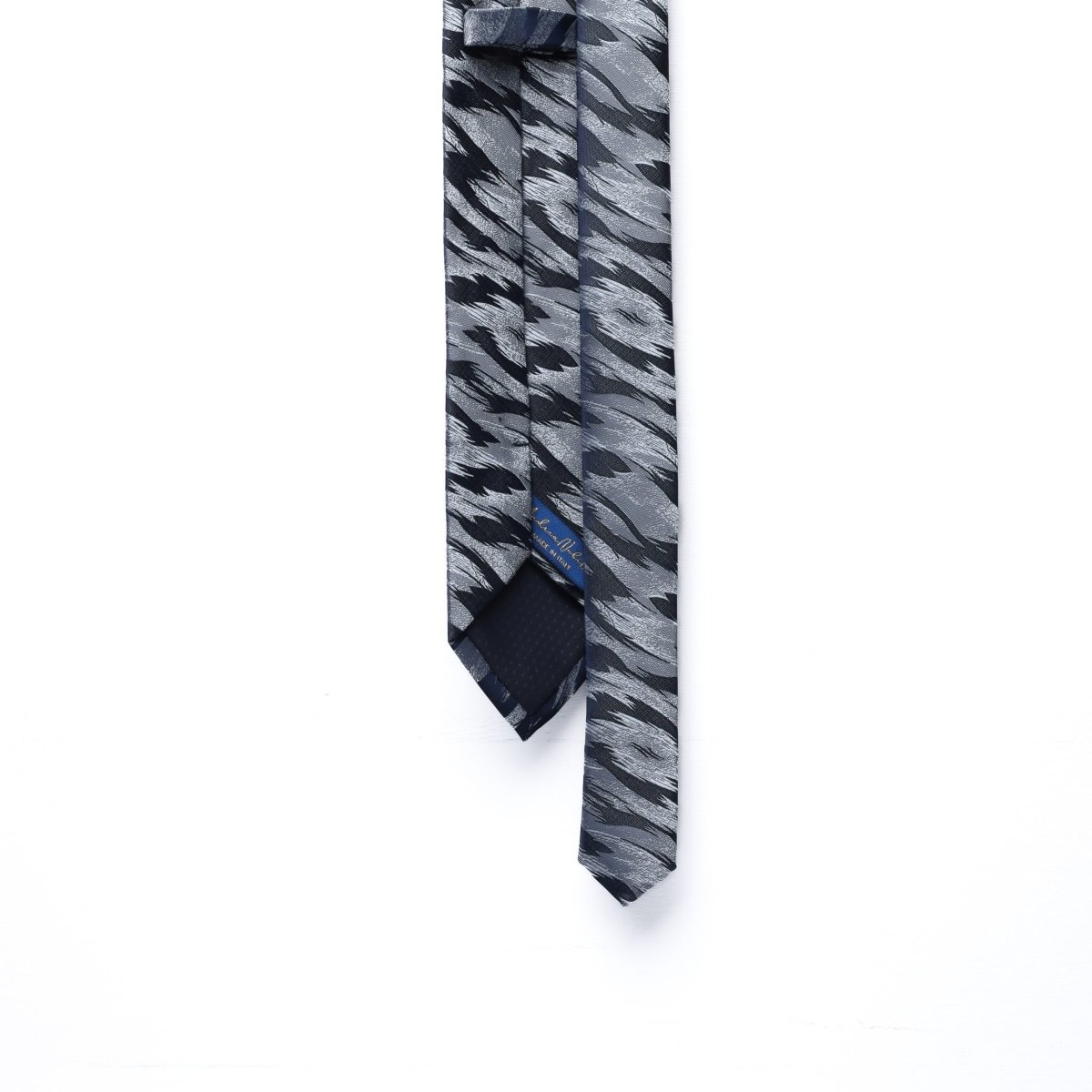 Cravatta artigianale Andrea Nobile realizzata in pura seta italiana con fantasia wild nei toni del grigio.