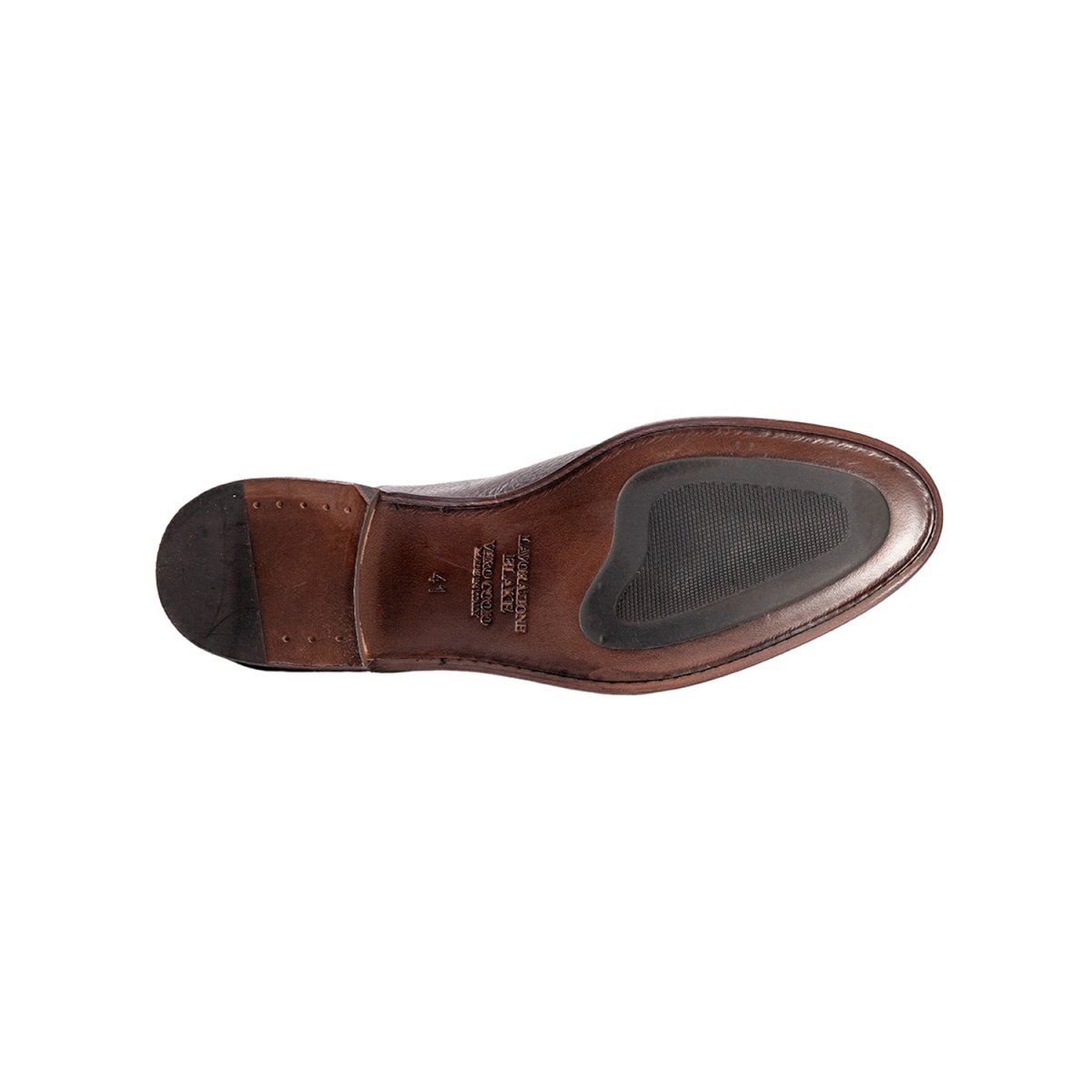 Oxfrod stringata trattata e colorata a mano con puntale, il pellame una volta lavorato viene martellato per dare un look casual ad una forma molto classica rendendola unica nel suo genere, ideale in ambiti lavorativi o anche solo per fare la classica passeggiata con stile. La suola è interamente in cuoio con inserto in gomma antiscivolo rendendo la calzatura utilizzabile anche sul bagnato.