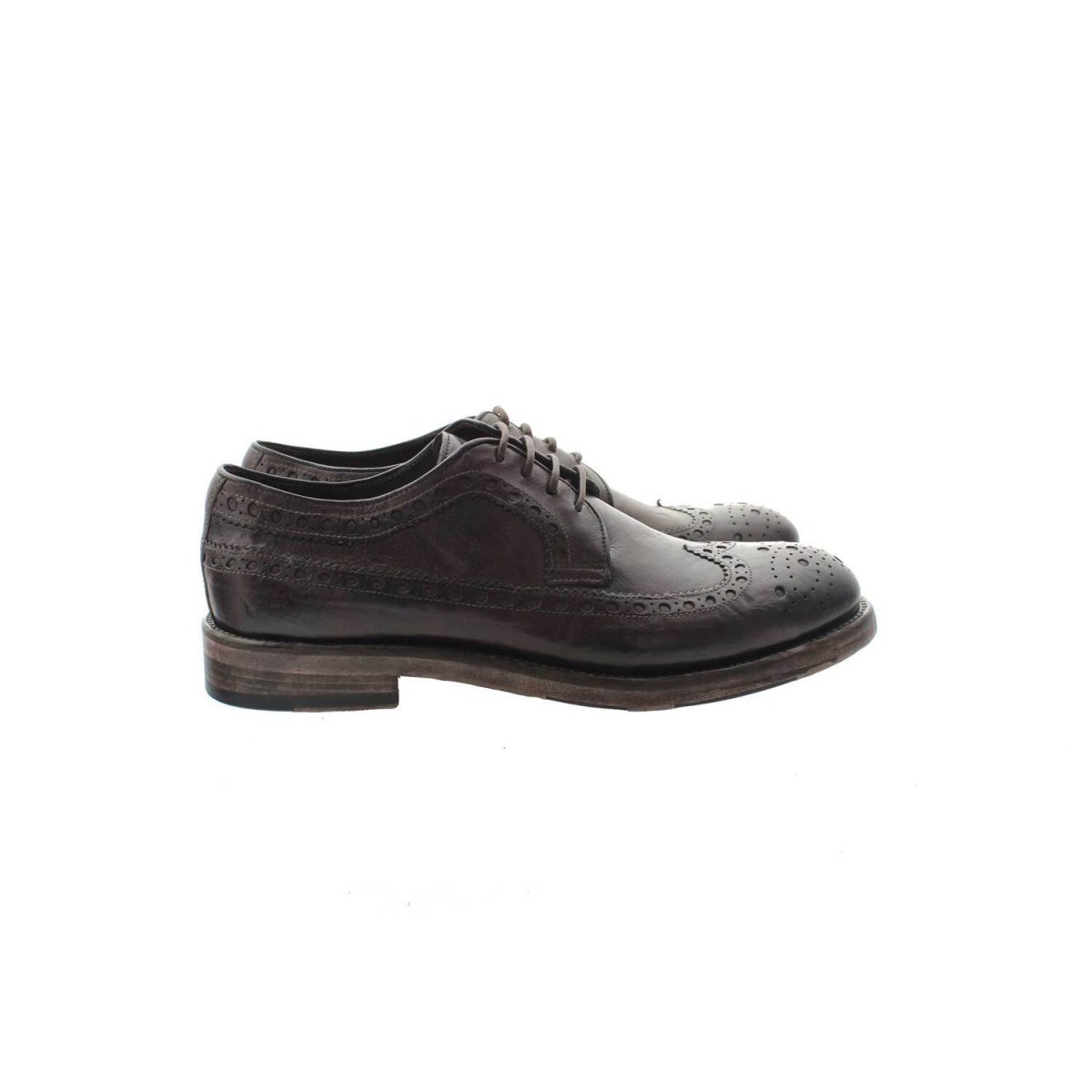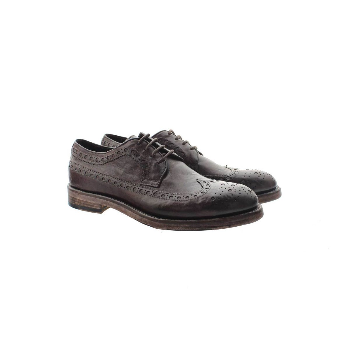Derby brouges stringata in pelle lavorata e trattata artigianalmente, stile semplice che non passa mai di moda, ottima per chi cerca una calzatura versatile da utilizzare sia in ambiti lavorativi che per la classica passeggiata in città senza rinunciare all’eleganza e la classe dell’artigianato italiano. La suola è in cuoio con degli inserti di gomma antiscivolo che rendono la calzatura ottimale anche sul bagnato.