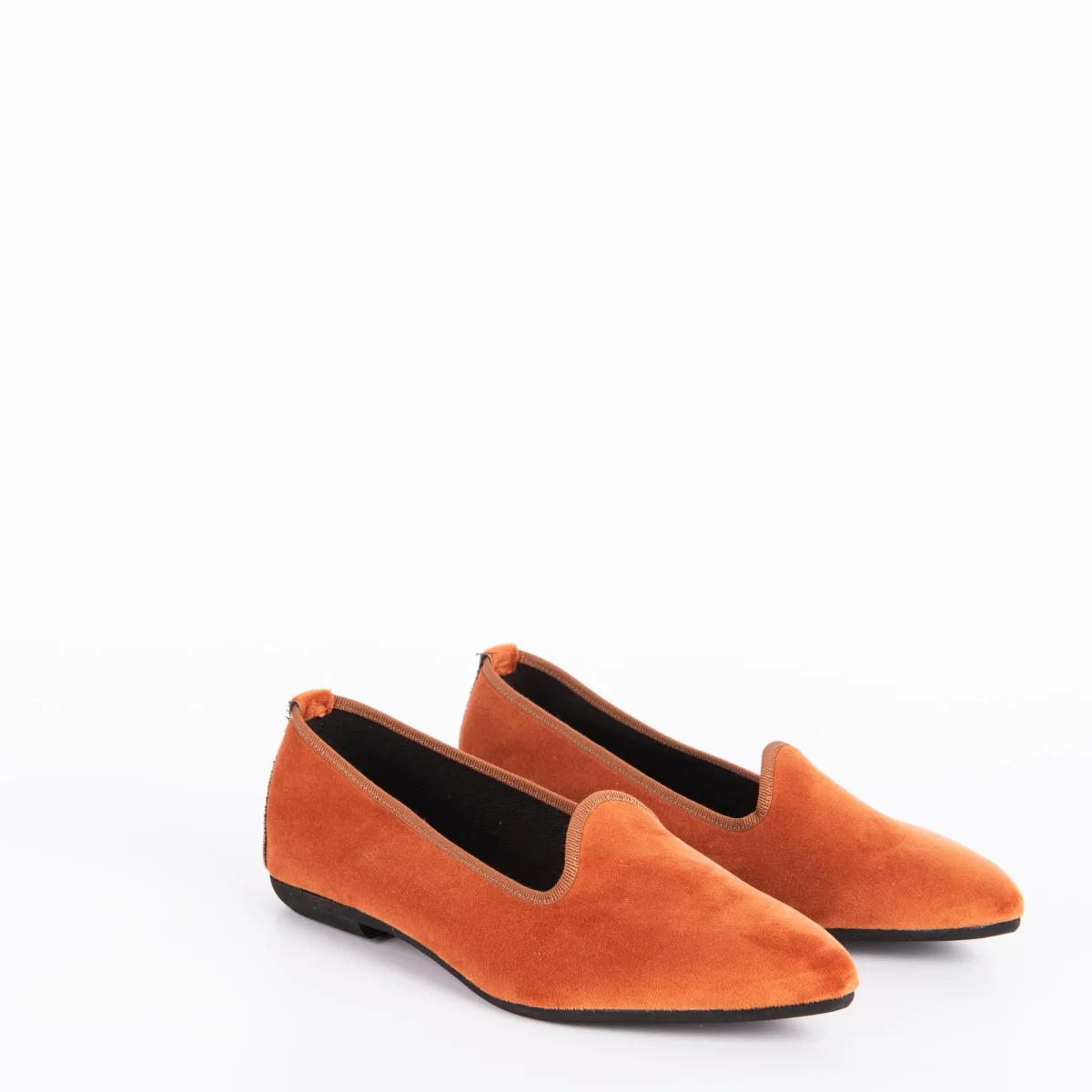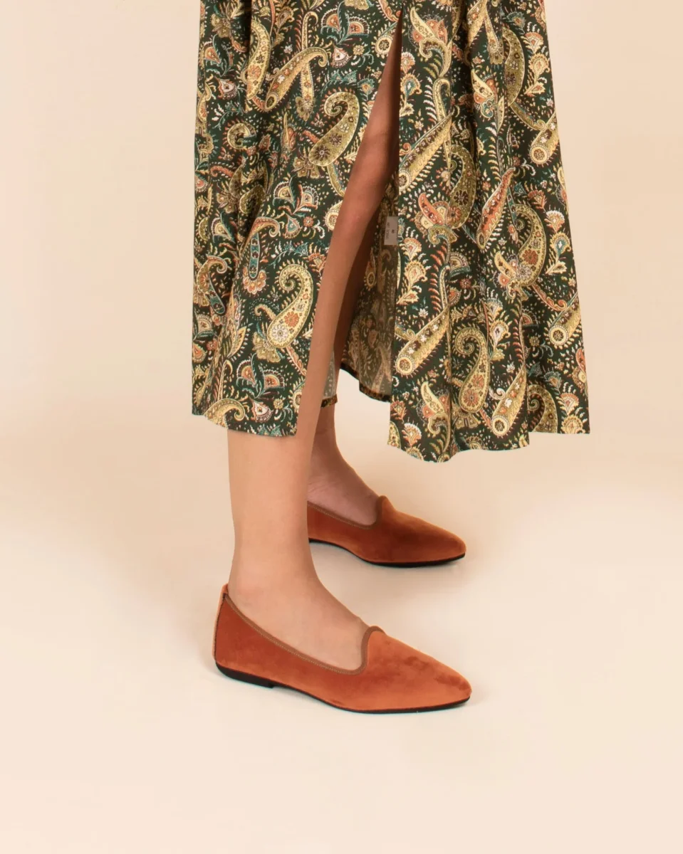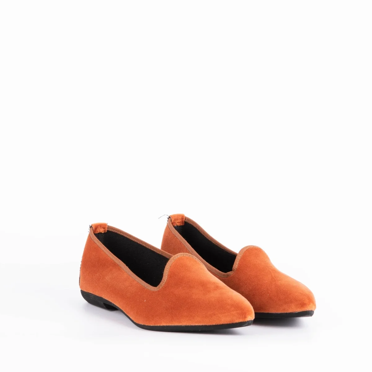 Scarpa montata a punta e senza lacci. Realizzata in un morbido velluto. Sottopiede in pelle e fondo in gomma idrorepellente, leggero ed antiscivolo. Facili e versatili, da indossare e da interpretare, ti stupirai quanto questa scarpa nella sua comodità potrà essere un versatile accessorio.