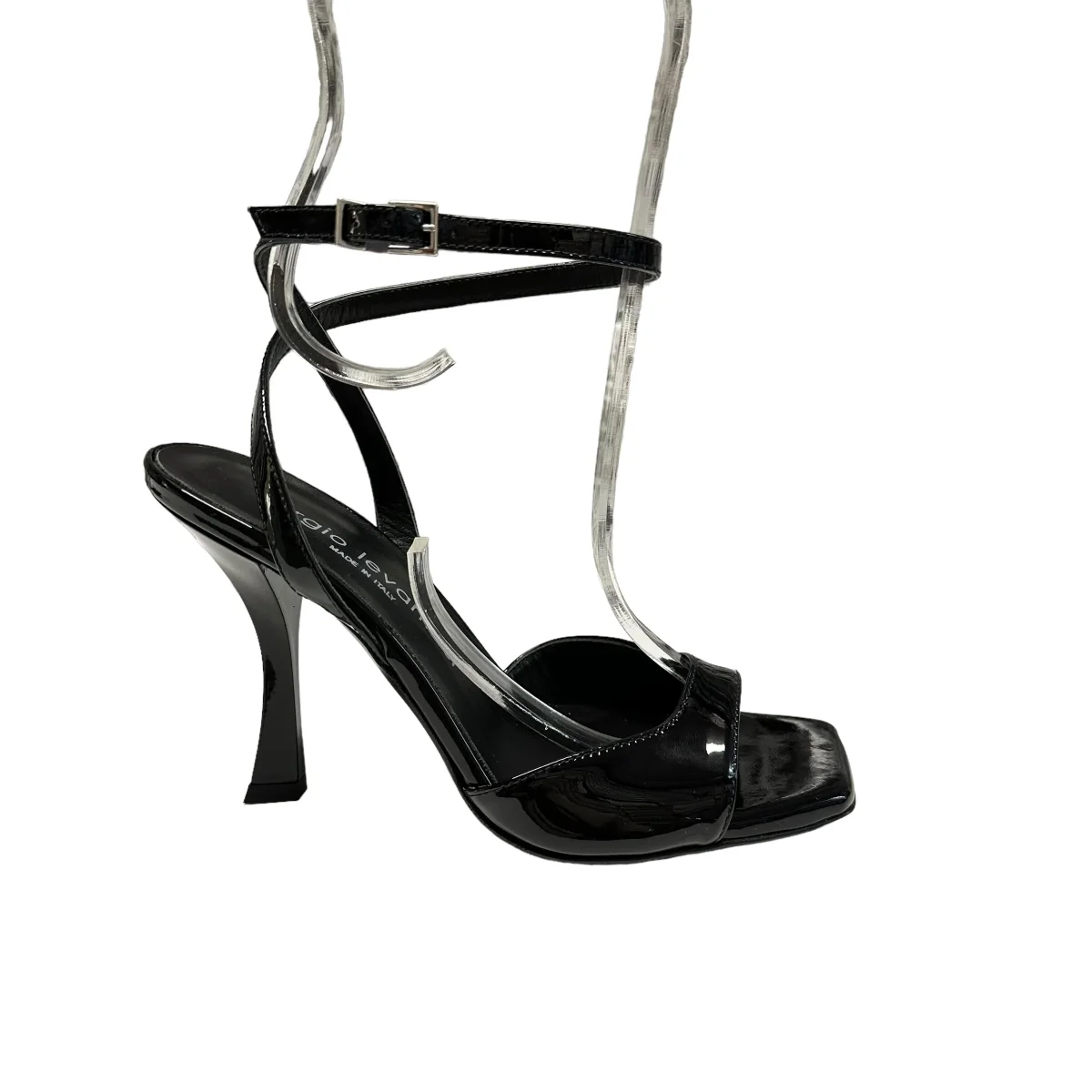 Sandalo in vernice con punta squadrata, braccialetto alla caviglia, tacco cm 10