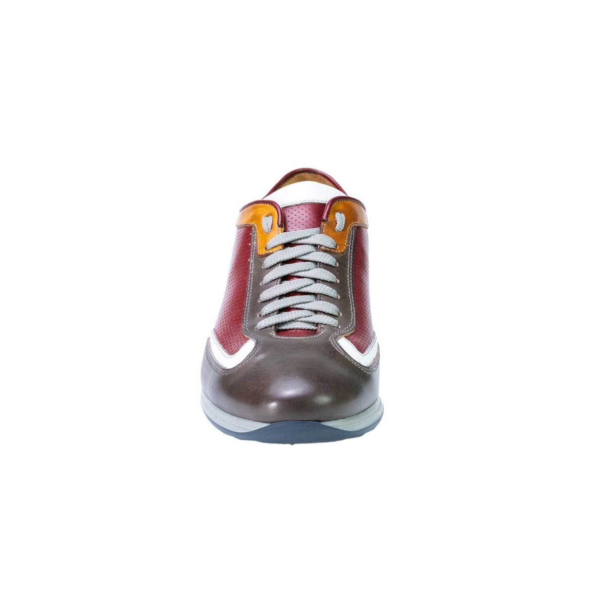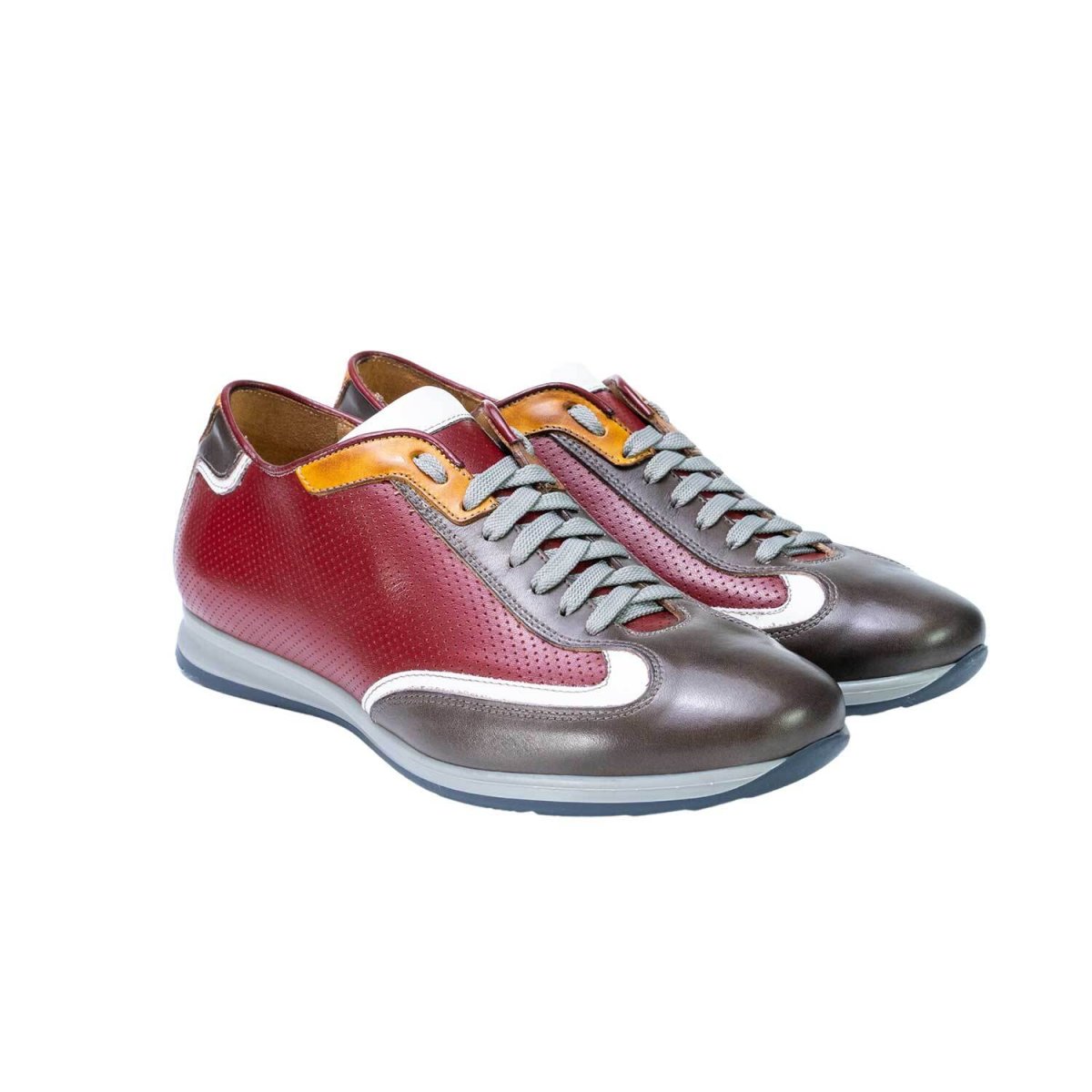 Sneakers artigianale realizzata in pelle di vitellino che viene trattata e colorata artigianalmente. Texture microforata sulla tomaia e essendo la calzatura foderata la si può utilizzare anche nei periodi di pioggia. La suola è interamente in gomma antiscivolo ottima anche per ambienti sul bagnato.