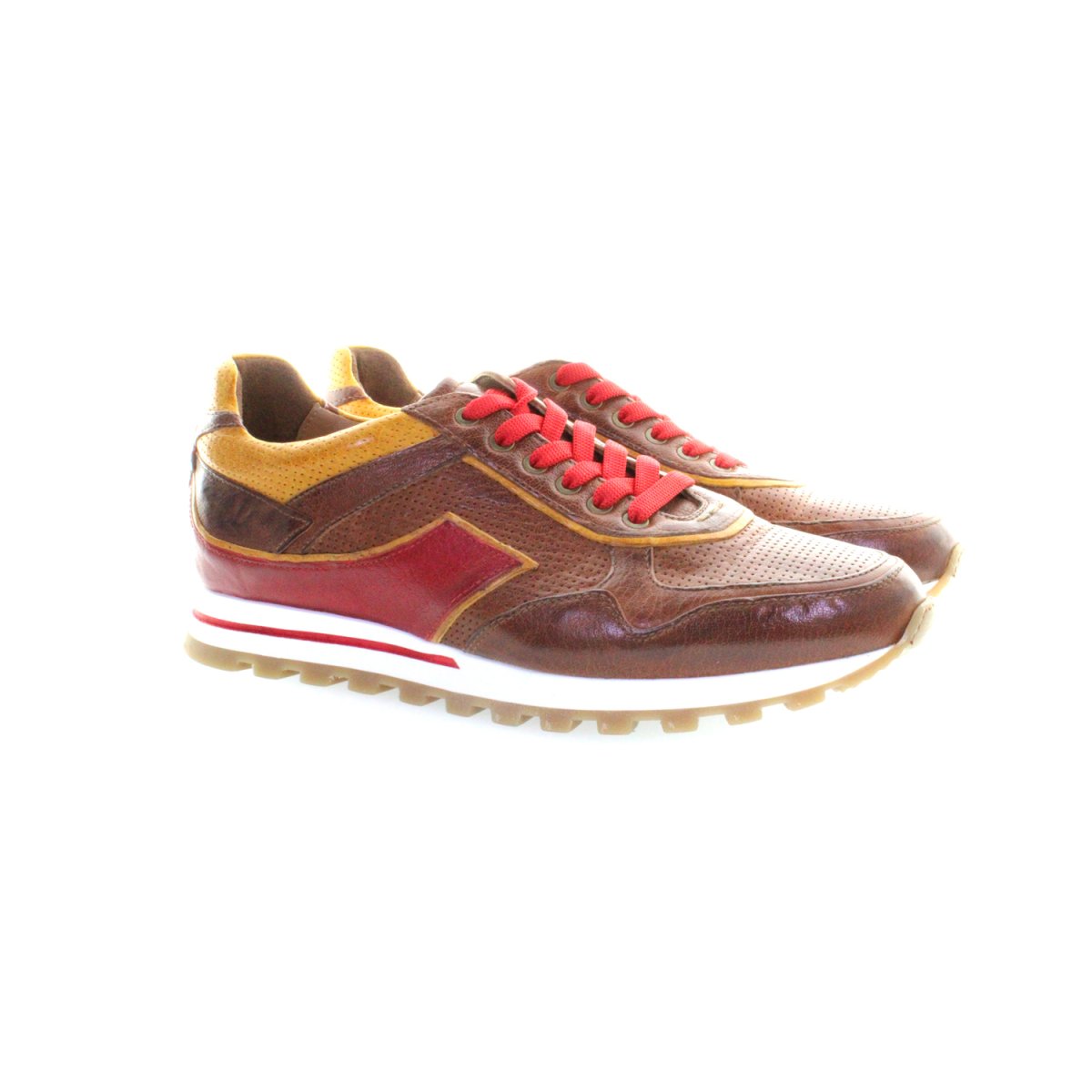 Sneakers artigianale in pelle di vitellino trattata e colorata a mano. Ideale per chi cerca una calzatura comoda senza rinunciare alla qualità e allo stile del manufatto italiano. Texture microforata sulla tomaia ma essendo la calzatura foderata la si può utilizzare anche nei periodi di pioggia. La suola è interamente in gomma antiscivolo rendendo la calzatura ideale anche sul bagnato.