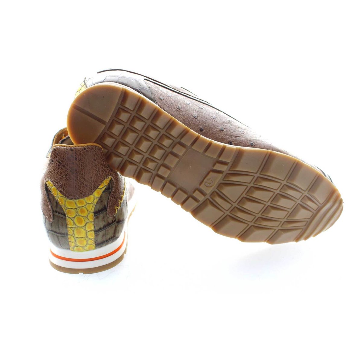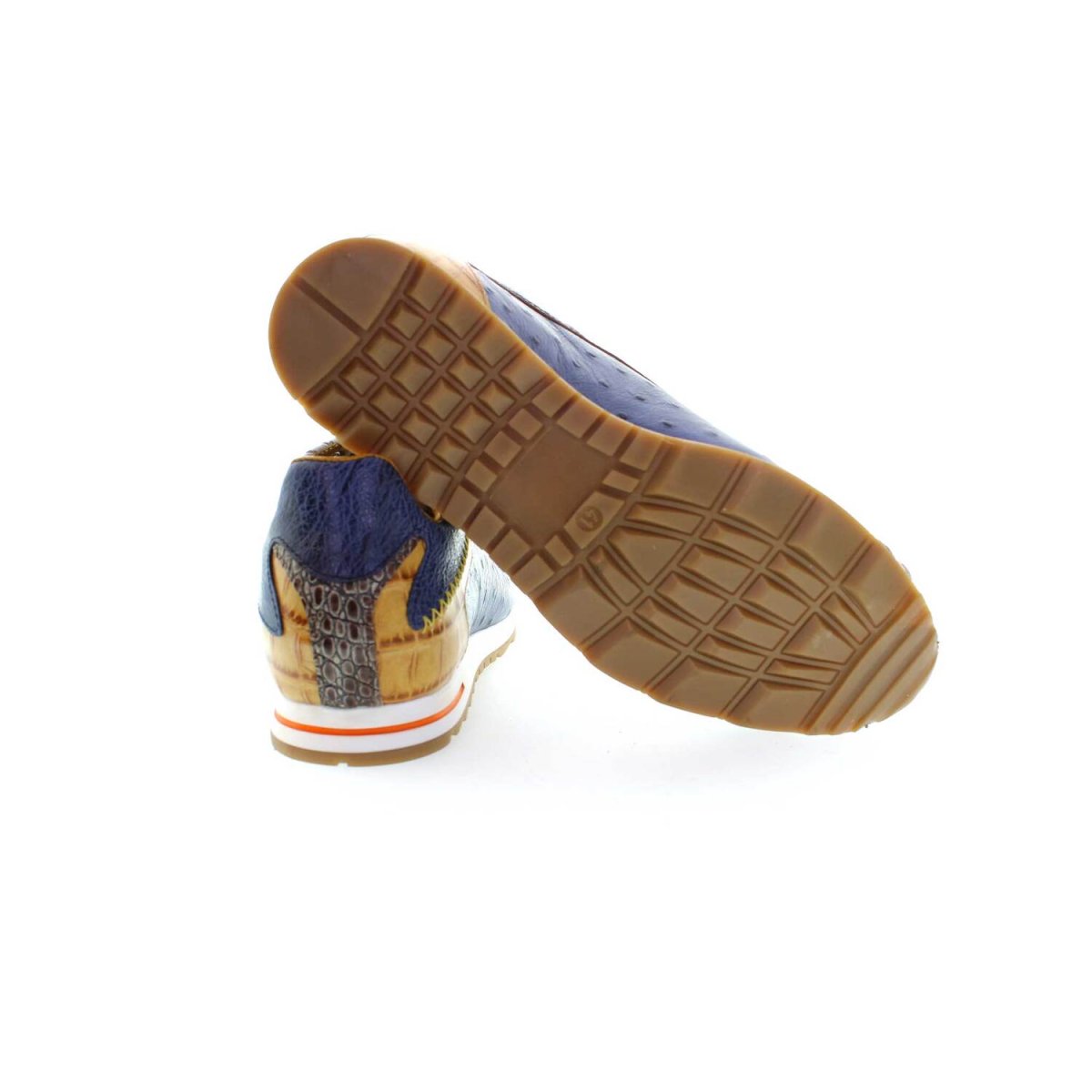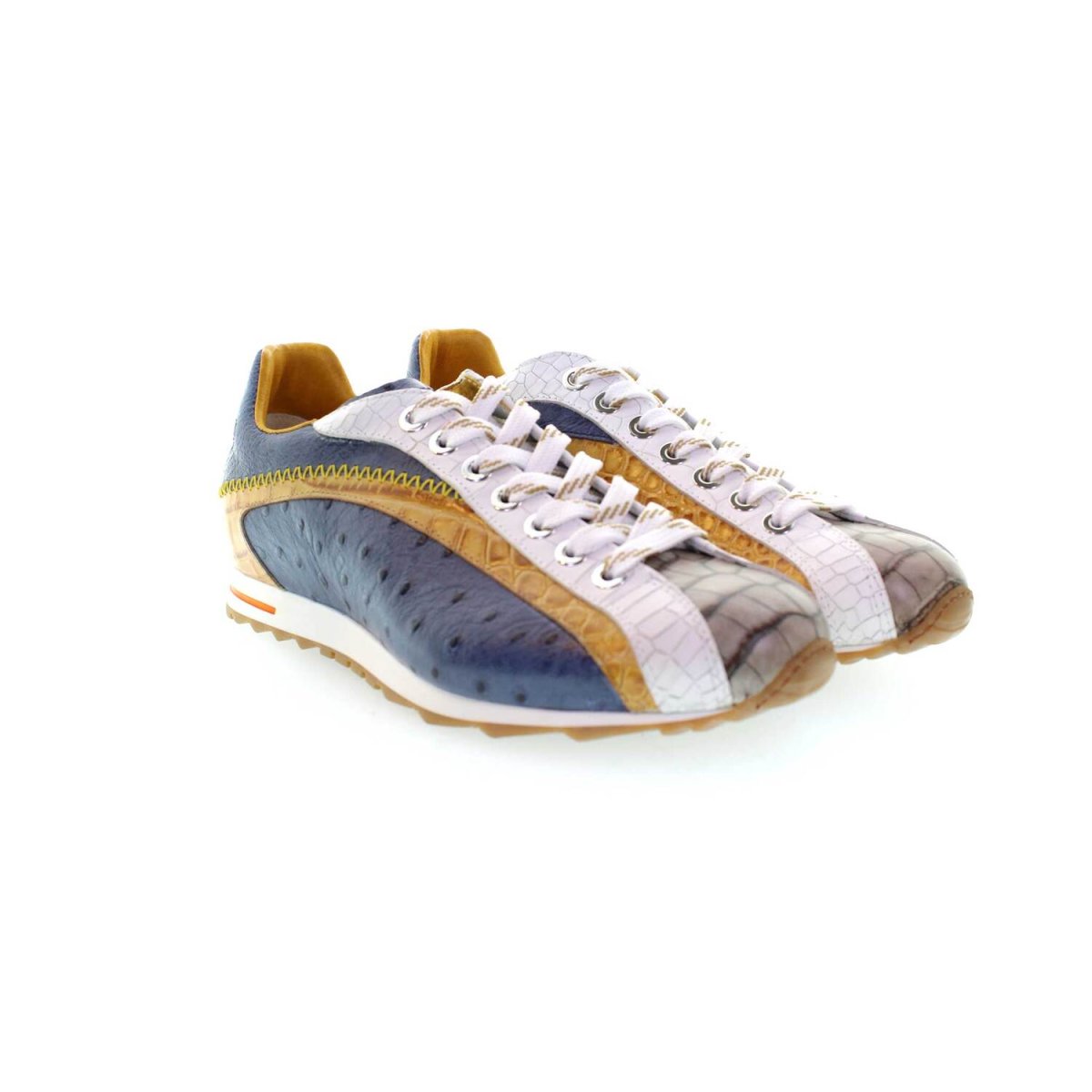 Sneakers artigianale realizzata in pelle di vitellino che viene trattata e colorata artigianalmente. Stampa coccodrillo e struzzo. Ideale per chi cerca una calzatura comoda e decisamente unica nel suo genere senza dover rinunciare all’elite dell’artigianato italiano. La suola è interamente in gomma antiscivolo ottima anche per ambienti sul bagnato.
