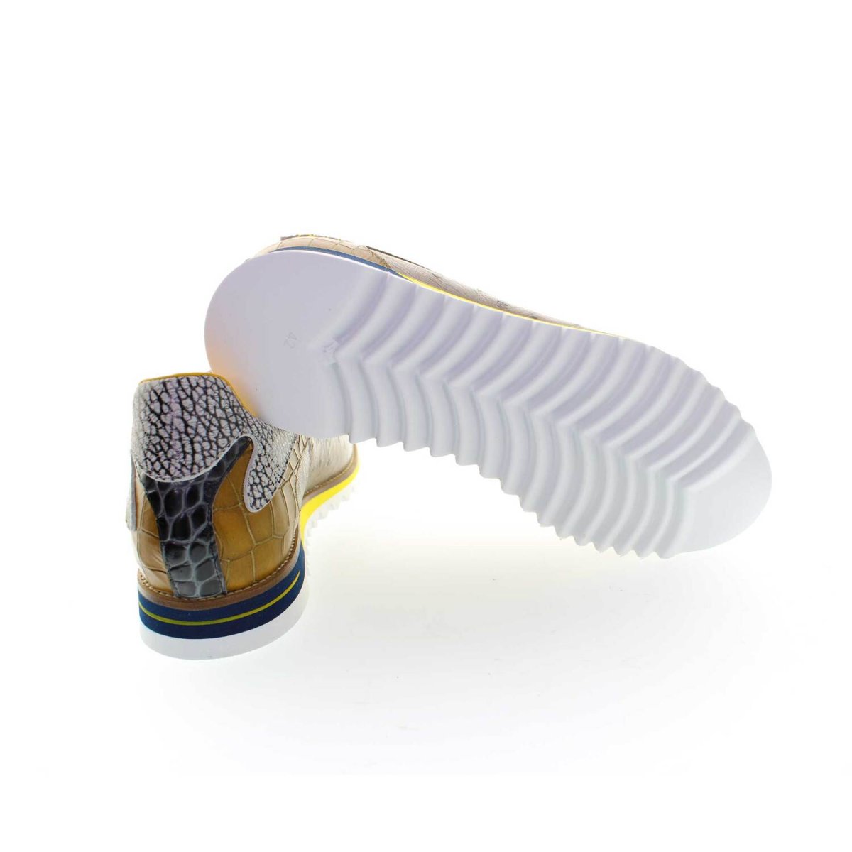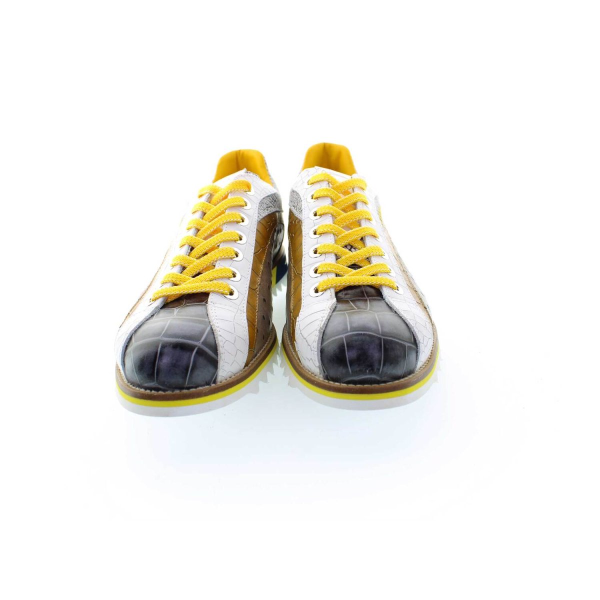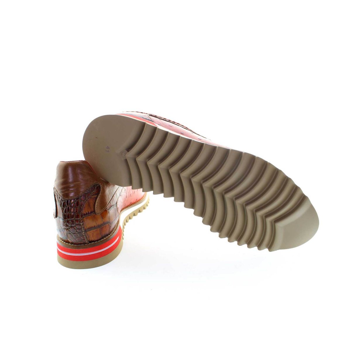 Sneakers artigianale realizzata in pelle di vitellino che viene trattata e colorata artigianalmente. Stampa coccodrillo e struzzo. Ideale per chi cerca una calzatura comoda e decisamente unica nel suo genere. La suola è interamente in gomma antiscivolo ottima anche per ambienti sul bagnato.