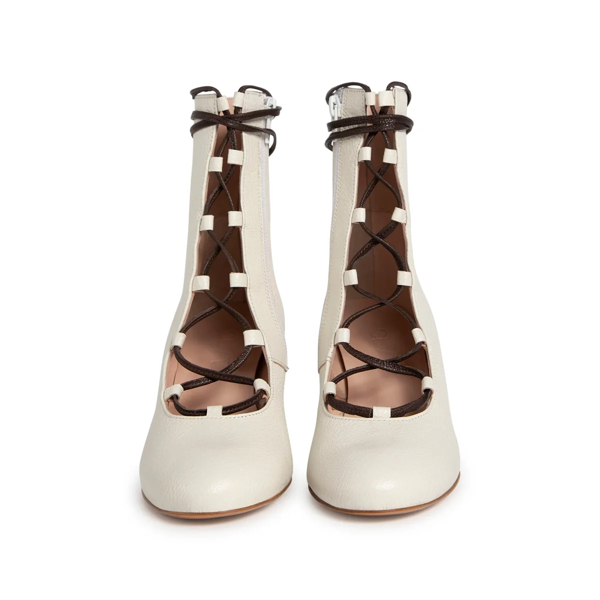 Tronchetto aperto davanti con allacciatura a vista.