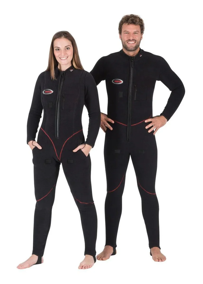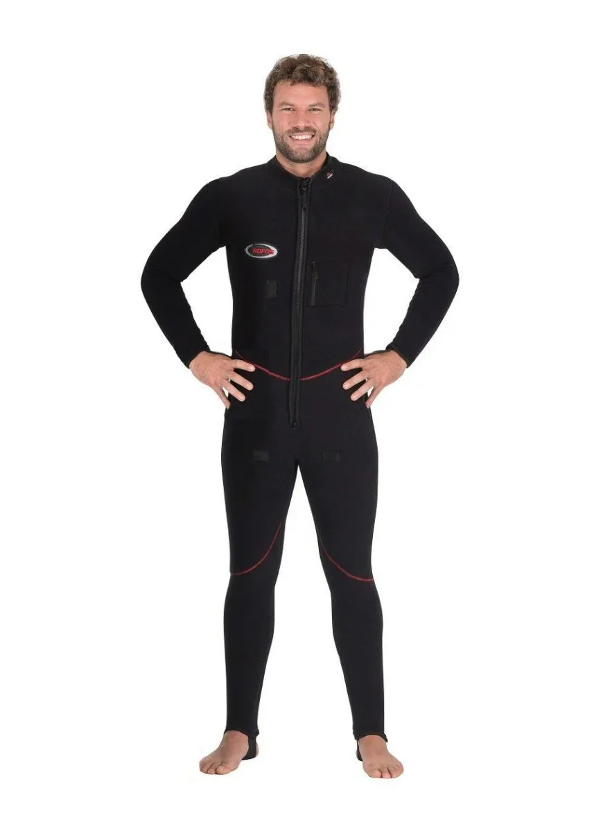 Altre caratteristiche sono la cerniera frontale con un doppio cursore protetto, ghette alla caviglia, elastici ai polsi., ginocchio preformato, foro sul torace per il cavo dellโ€™elettroriscaldatore e fori per la p-valve su entrambe le gambe