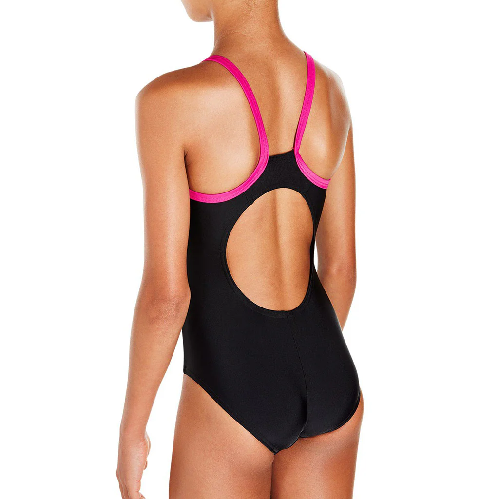 Costume intero da bambina/ragazza. Tessuto Endurance10: 80% PA 20% EA Tecnologia stretch multi direzionale che permette un maggiore confort Materiale durevole che permette al costume di rimanere come nuovo nuotata dopo nuotata Resistenza al cloro migliorata rispetto ai classici tessuti da nuotata grazie alla tecnologia CREORA HighClo Protezione dai raggi solari UVA e UVB