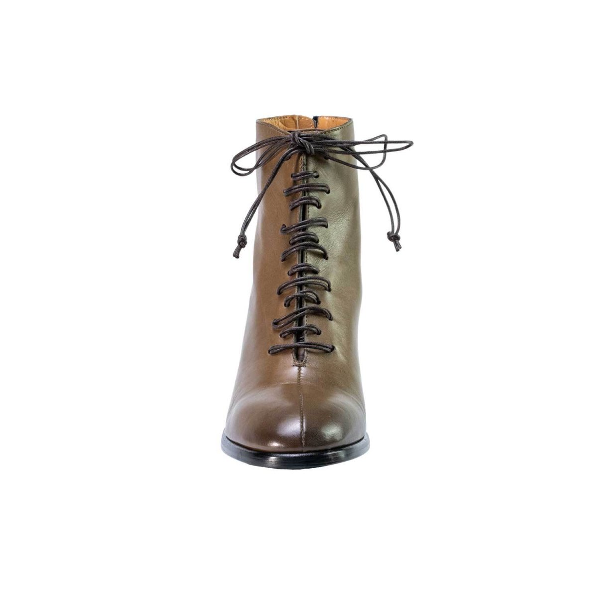 Questo stivaletto viene trattato e colorato a mano presenta una zip posteriore molto utile per la vestibilità rendendola rapida e molto semplice una volta regolati i lacci. Il pellame è morbidissimo e si adatta alla forma del piede come fosse un guanto. Il tacco misura 5cm ed ha un ampio punto d’appoggio garantendo stabilità e comfort durante la camminata. Stile molto attraente e attraente senza però rinunciare all’eleganza che caratterizza le nostre calzature. La suola è interamente in cuoio con degli inserti in gomma antiscivolo.