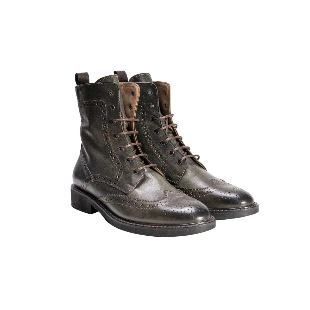 Stivaletto brouges artigianale lavorato all’inglese, presenta sia i lacci che una zip laterale che, una volta regolate le stringhe, permettono una calzata veloce e molto semplice. Anfibio classico e molto versatile, ottimo per un utilizzo quotidiano. La suola interamente in gomma antiscivolo rendono la calzatura ultra leggera.