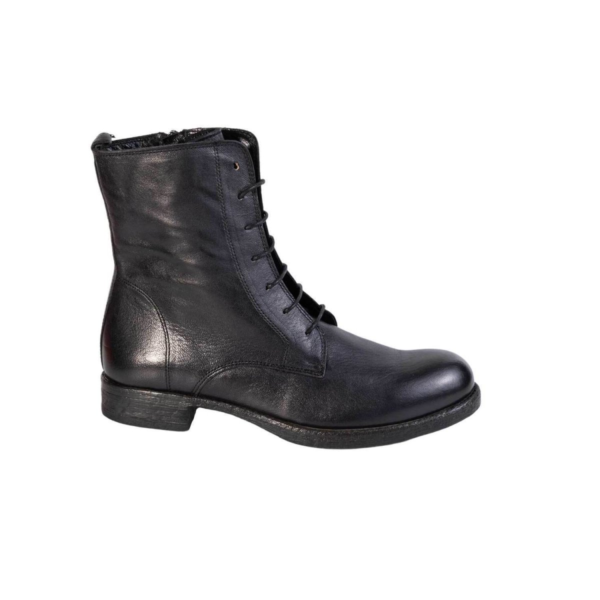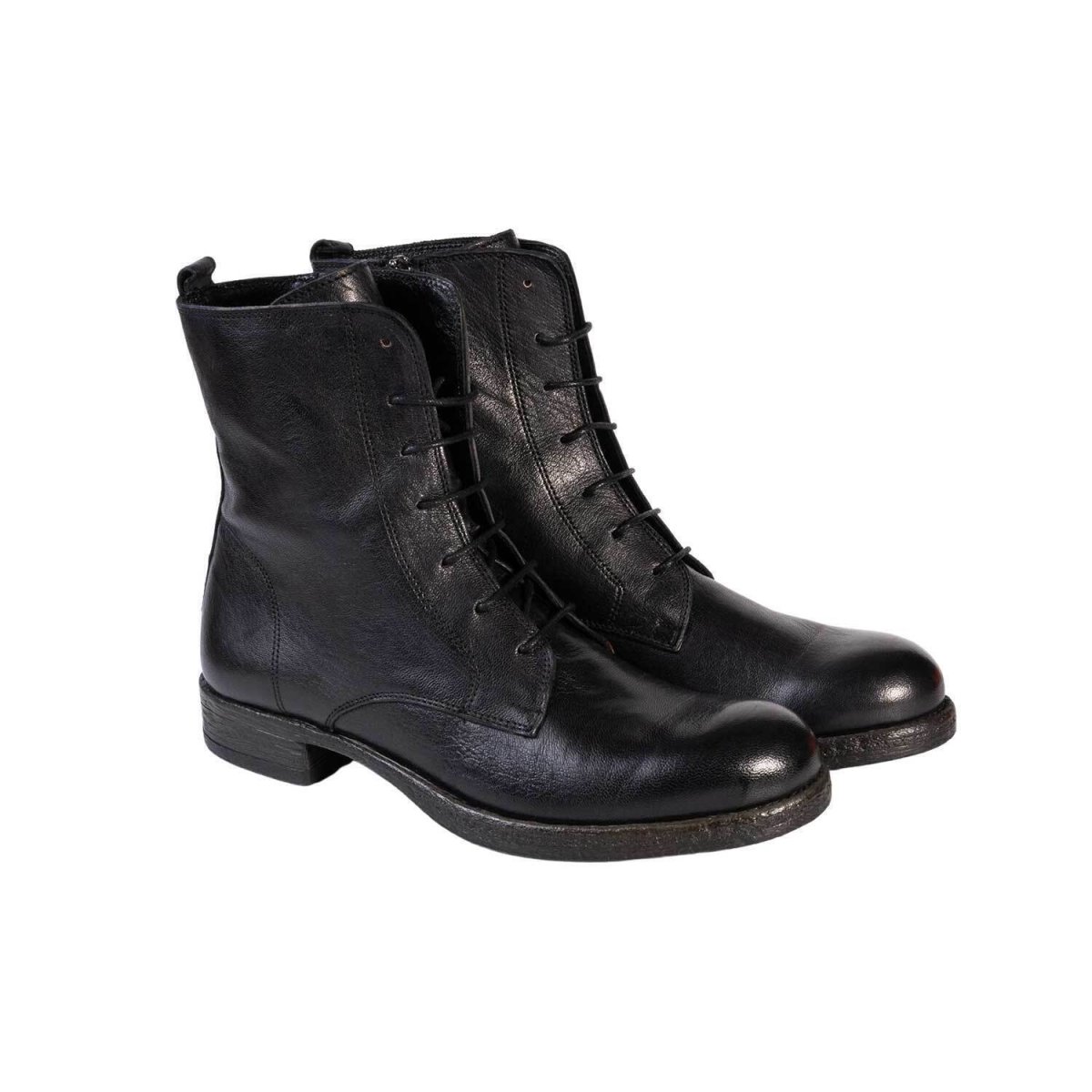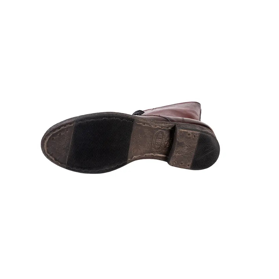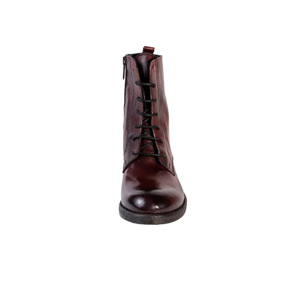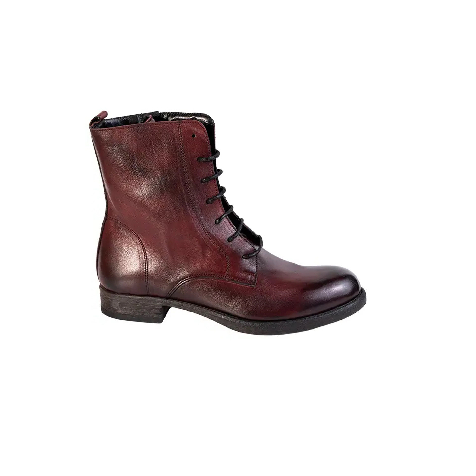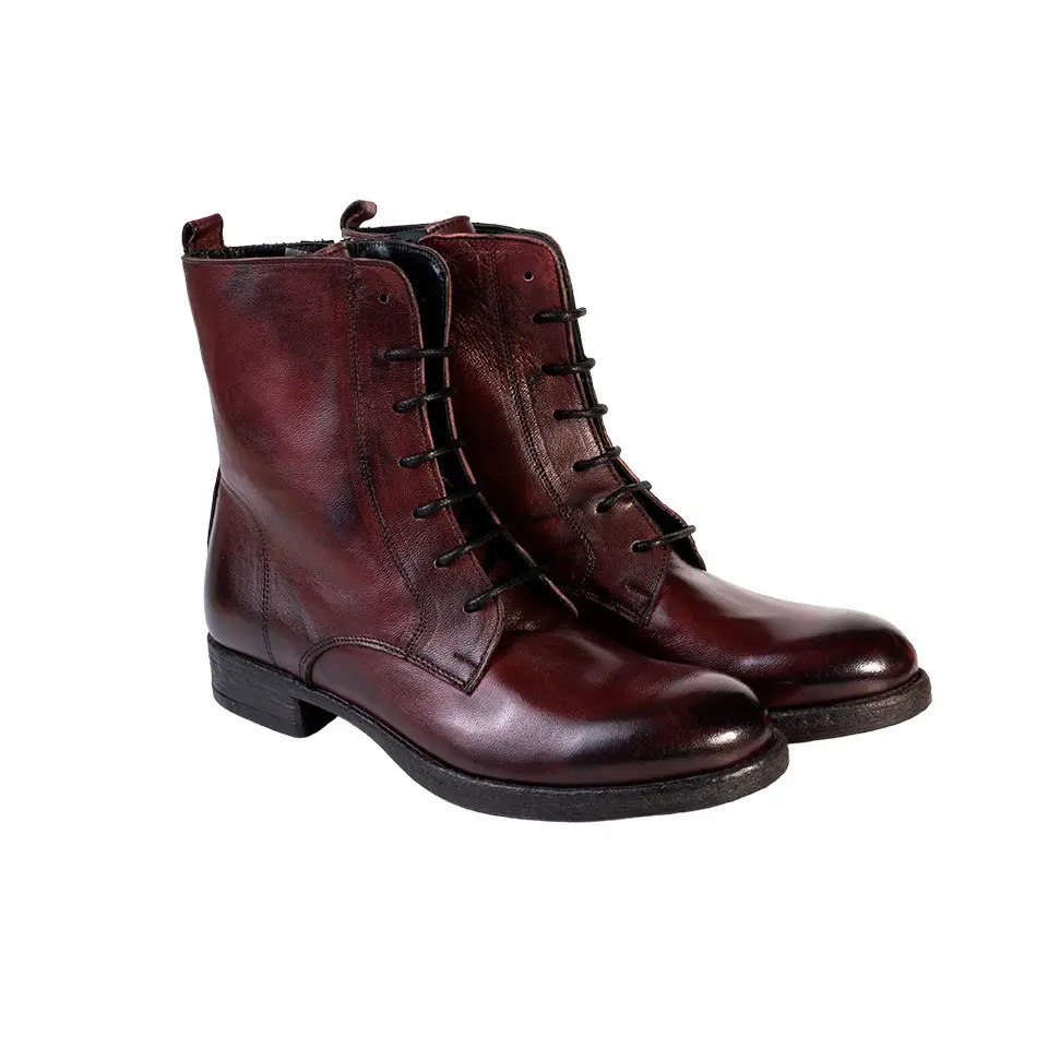 Stivaletto stringato lavorato e colorato artigianalmente, presenta una zip posteriore che garantisce comodità e rapidità nell’indosso una volta regolati i lacci. Anfibio di forma classica e semplice perfetto per un utilizzo quotidiano. La suola è interamente in gomma antiscivolo rendendo la calzatura perfetta durante i periodi piovosi.