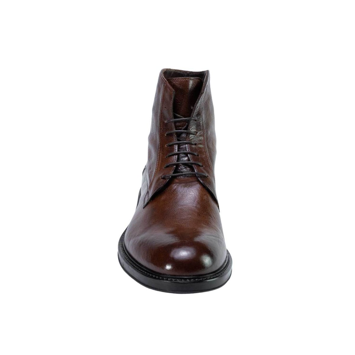 Questo stivaletto allacciato viene trattato e colorato a mano, il pellame dopo che esser stato lavorato viene martellato per dare una forma irregolare al pellame che da un look “movimentato”. Classico intramontabile e molto versatile perfetto per più occasioni avendo un look classico ma allo stesso tempo casual dato dalla particolare lavorazione della pelle. La suola è interamente in cuoio con inserti in gomma antiscivolo che garantiscono comodità durante il corso di tutta la giornata.