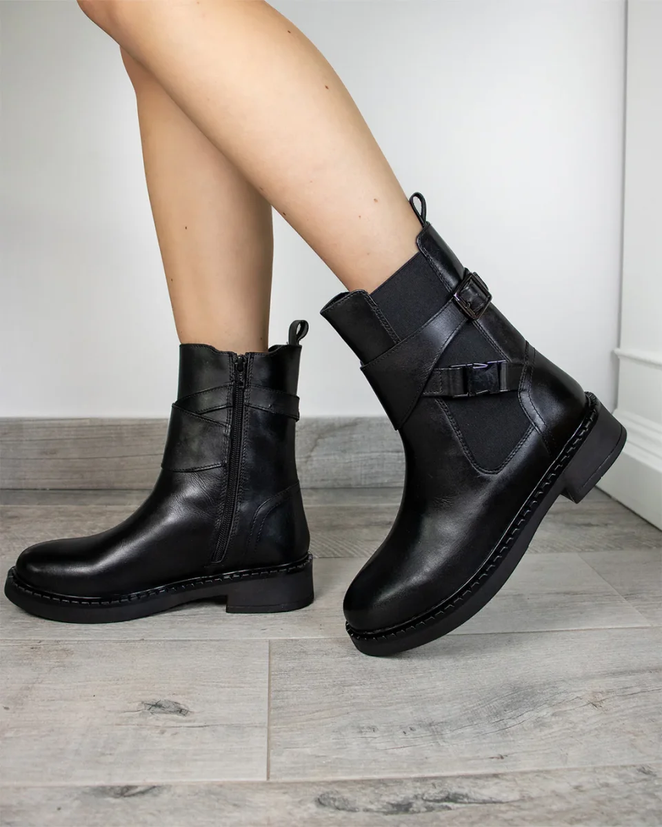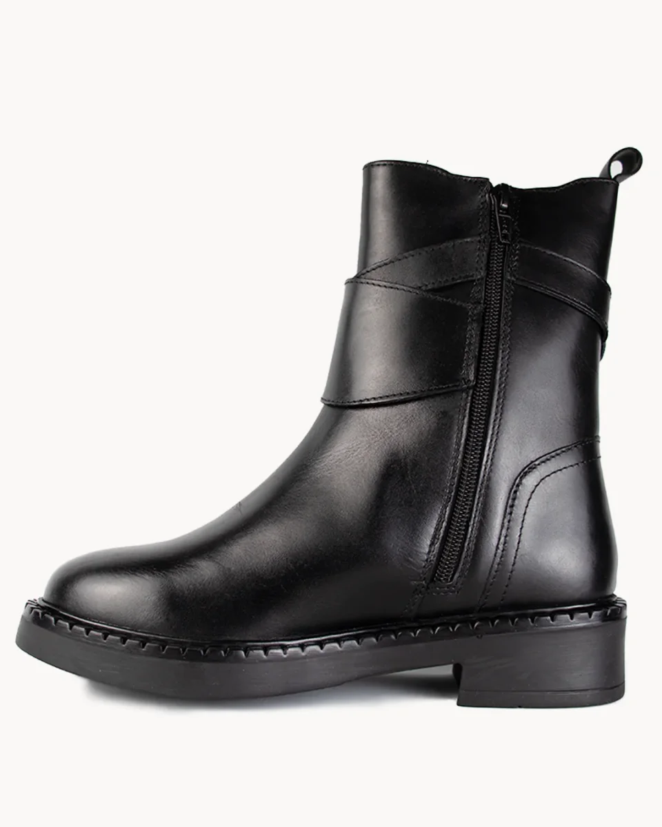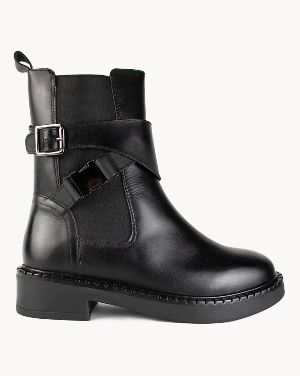 Tomaia in pelleChiusura con zip lateraleCinturini regolabili con fibbiaInserti laterali elasticizzatiInterno e soletta in pelle e tessileFondo in gommaCalzata: acquista la tua solita tagliaComposizione: 100% Vitello