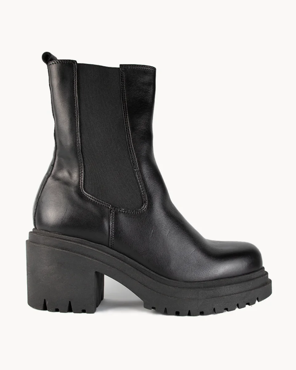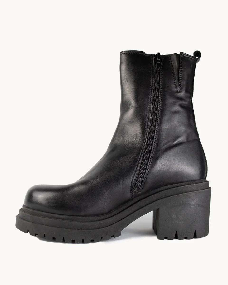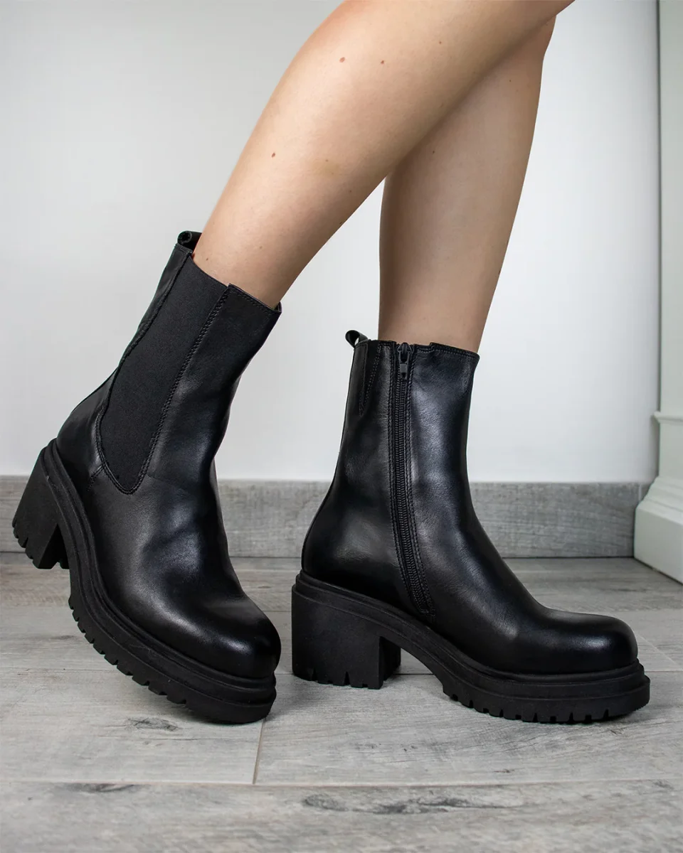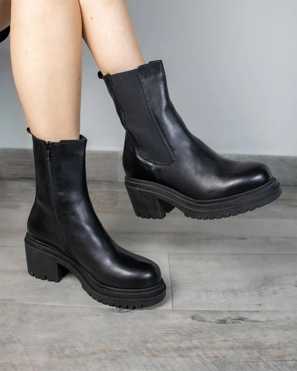 Tacco 60mmTomaia in pelleChiusura con zip lateraleInserti laterali elasticizzatiInterno e soletta in pelle e tessileFondo in gommaCalzata: acquista la tua solita tagliaComposizione: 100% Vitello